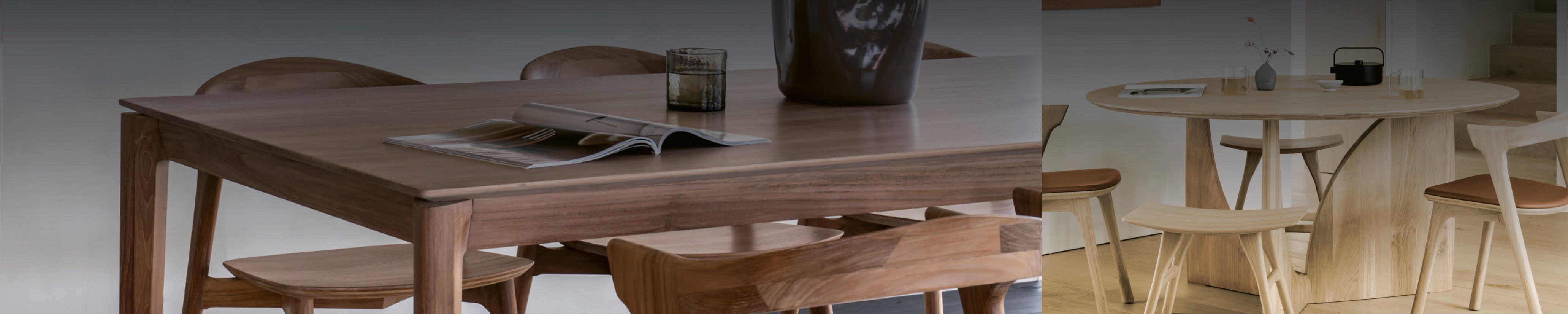 Les tables en bois massif d'Ethnicraft apportent le naturel, la beauté des formes et le design belge à votre table familiale. Combinables de multiples façons, toujours avec style.