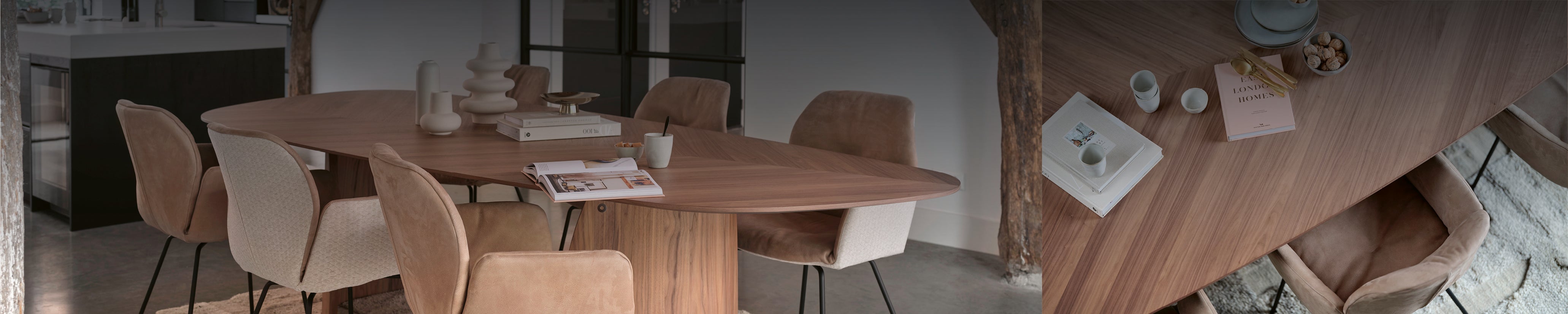Dolmen tables from Mobitec - sculptural, organic dining table with presence, character and tailor-made lightness.