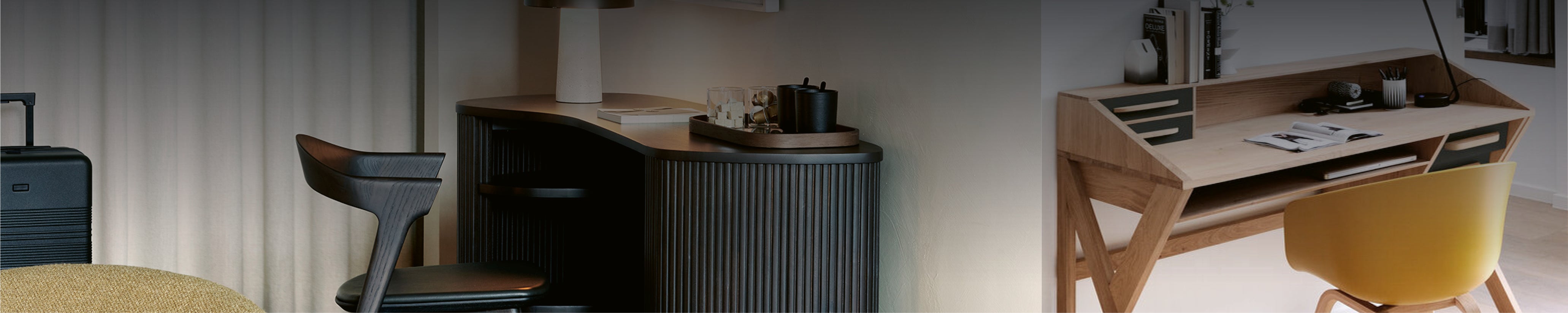 Office desks that are not only practical, but also beautiful - for Home office studio or studio. With a clear shape, natural material and ergonomic function.