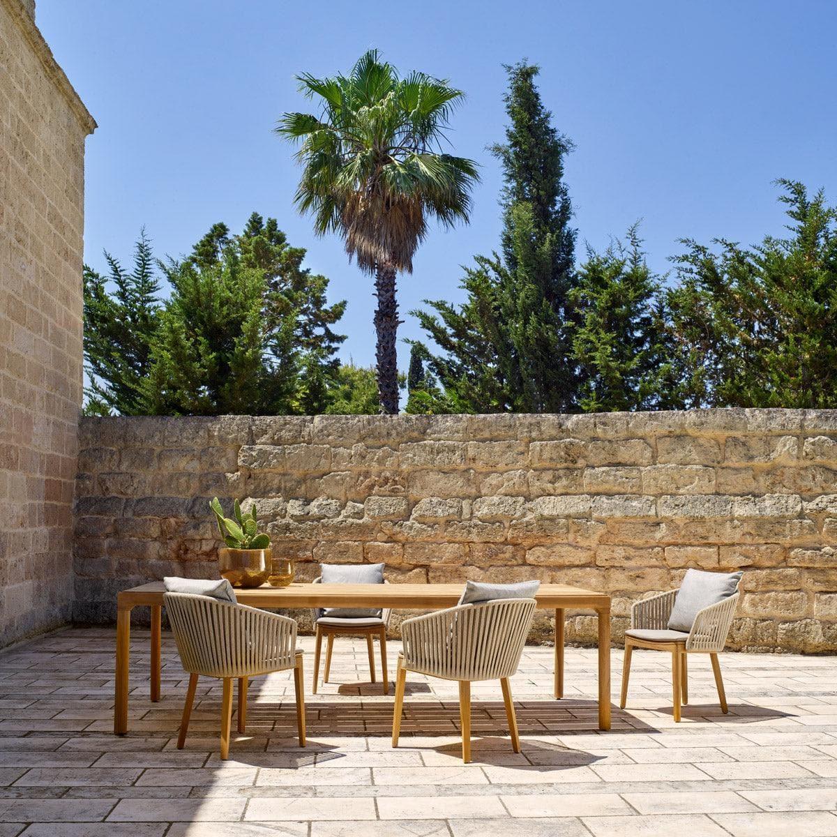 The material is weather-resistant, but still has a very natural look and feel. The soft, rounded design of the table and chairs will create an intimate atmosphere on your terrace.