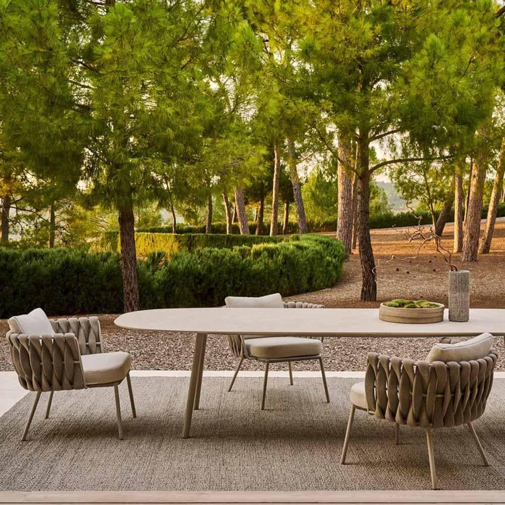 The TOSCA armchair impresses with its unique, pleasantly soft wickerwork, which looks as if it has been cast from a single piece and has no visible seams. This sophisticated finish gives the armchair a timeless elegance that is second to none. The material combination of Textilene and polyolefin not only ensures an aesthetic look, but is also absolutely weatherproof. This means that the armchair retains its shape and durability even under changing weather conditions.
