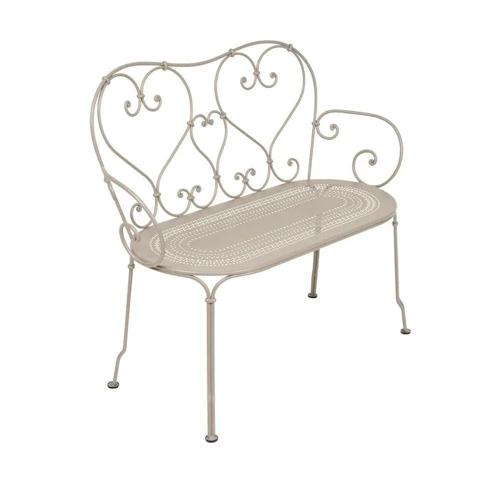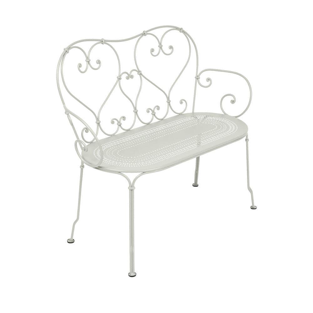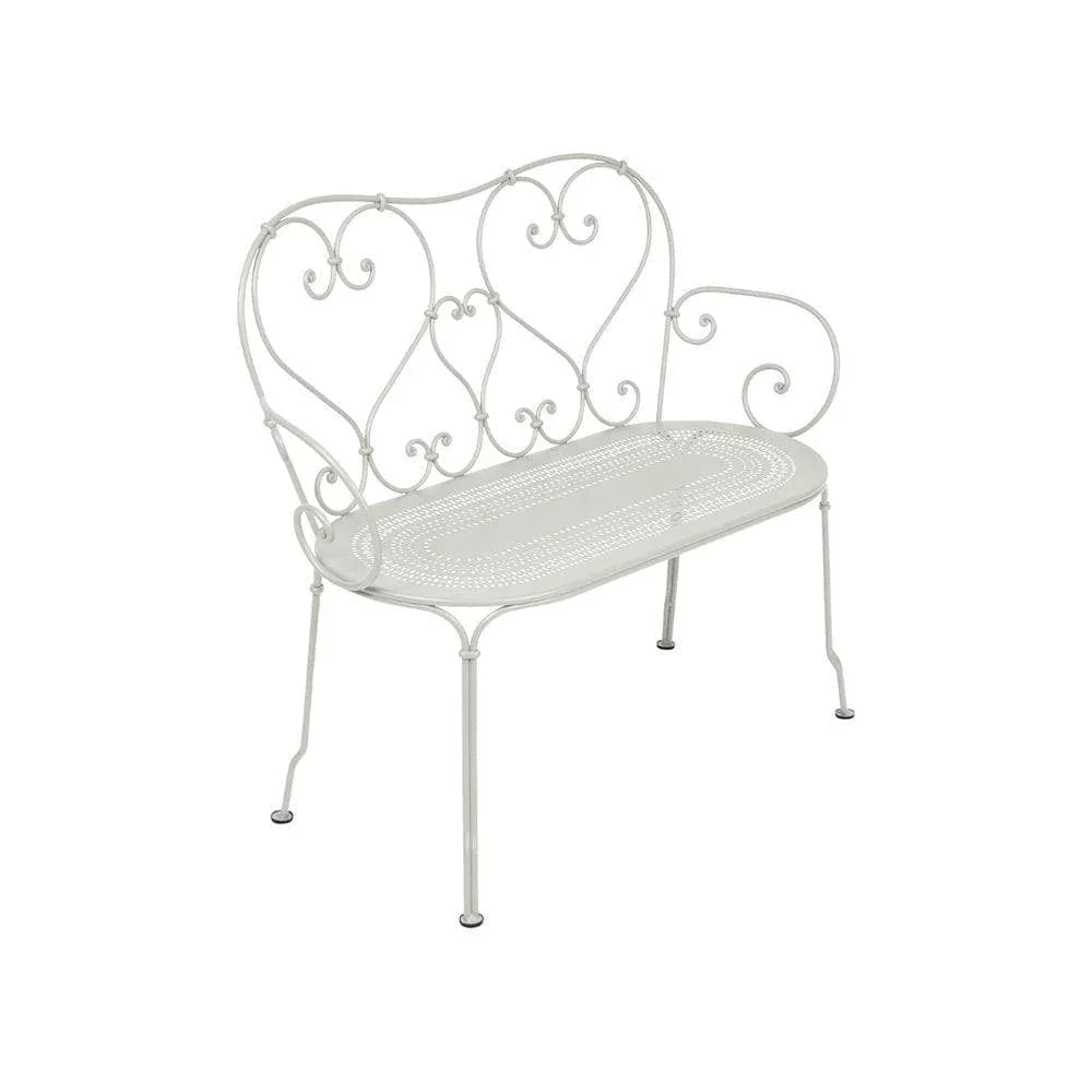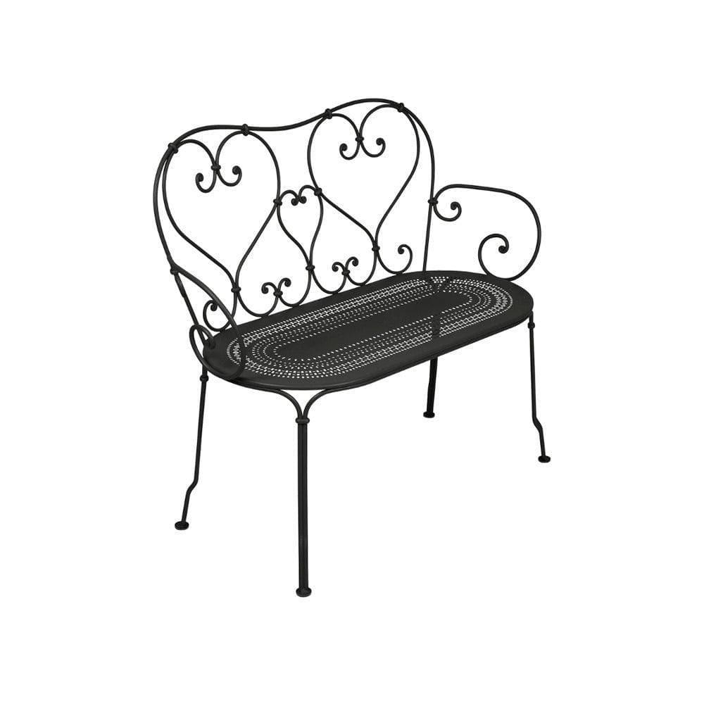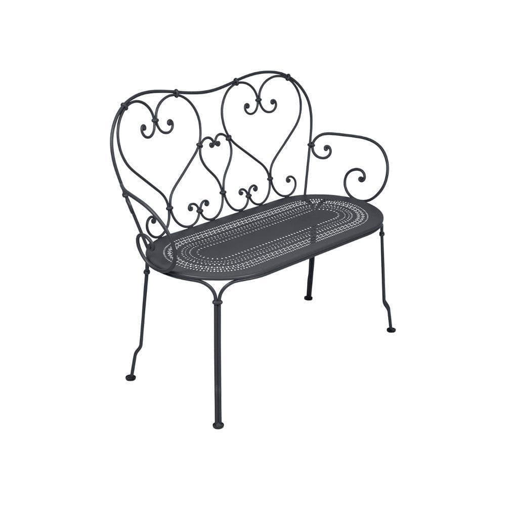 With its hand-forged, curved shapes and fine perforated pattern, this 1900 bench invites you to linger - for a romantic get-together or a chat with friends. After being technically revised around 10 years ago, the small bench is now particularly ergonomic and practical, as two benches can be stacked on top of each other.