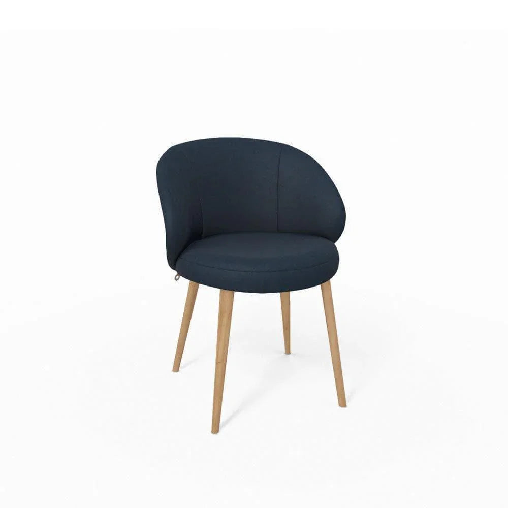 Its legs are available in three types of wood: beech, oak or walnut - different finishes are possible. As with all Mobitec chairs, you can freely choose the color and upholstery (fabric or imitation leather).