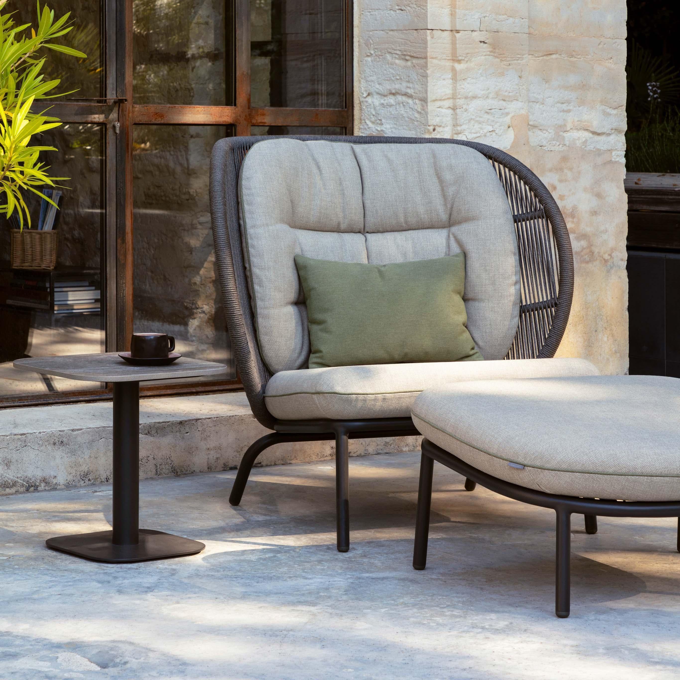 The Side table is available in two attractive versions: "Ceramic Flint" and "Aluminum Fossil Grey". Both versions blend harmoniously into the existing KODO collection and offer you the opportunity to customize your garden landscape. The combination of high-quality materials and sophisticated design ensures that the table is not only visually appealing, but also scores highly in terms of durability and ease of care.