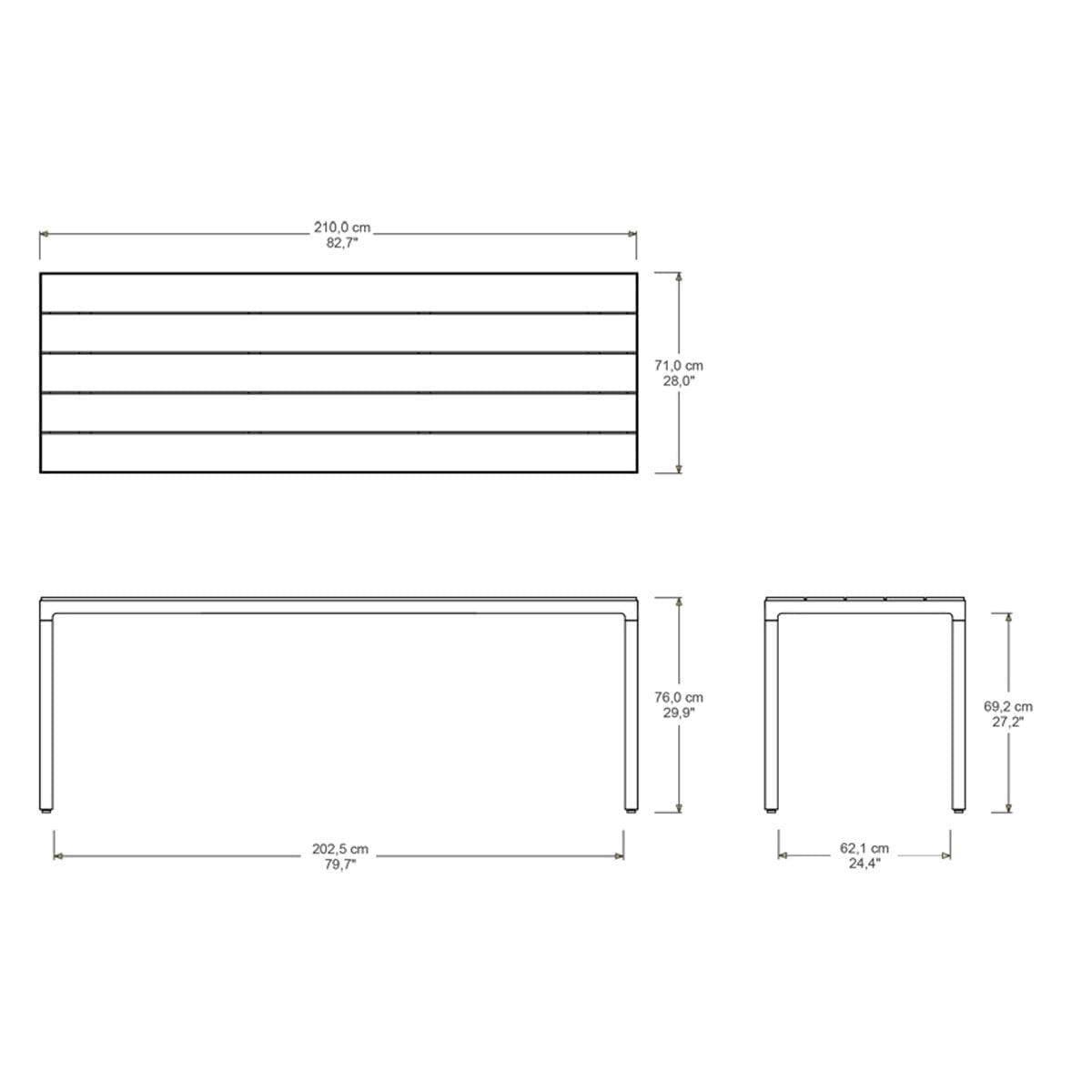 This narrower dining table is available in two sizes and offers space for six (212x73cm) or ten people (267x73cm) - whether it's a hearty breakfast or a cozy dinner with friends - Illum offers plenty of space for wonderful hours outdoors.