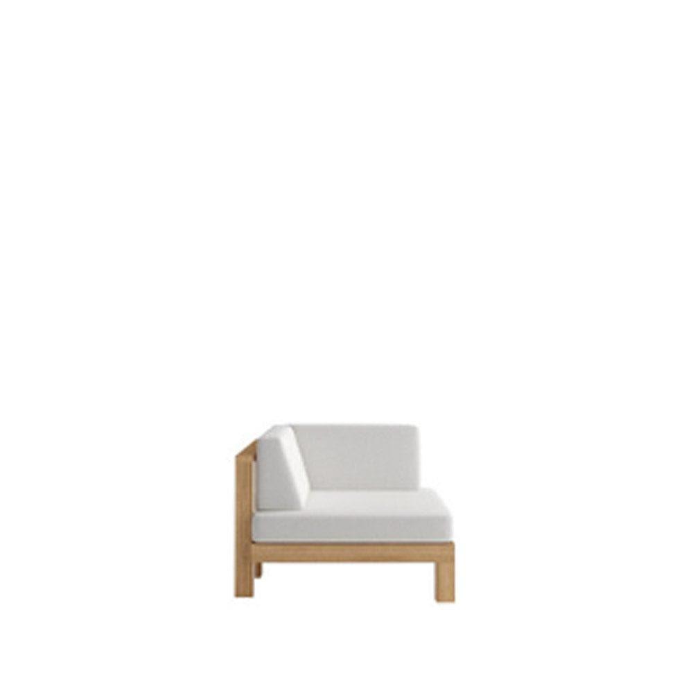 This modular sofa consists of 5 elements from which you can easily create the living room of your dreams. The sofa is available in high-quality teak from Indonesian plantations. Deep sink-in cushions create a casual and relaxing look and are available in a variety of luxurious outdoor fabrics.
