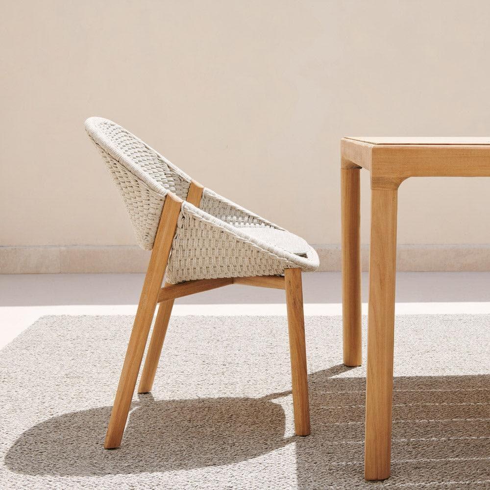 Thanks to the use of teak, the chair frame is not only particularly delicate, but also extremely durable. Each chair is hand-covered with Tricord® - the material was developed exclusively for Tribù and is particularly UV and rot-resistant. The natural colors fit into any garden landscape - from the house by the sea to the purist roof terrace and create a natural, timeless flair.