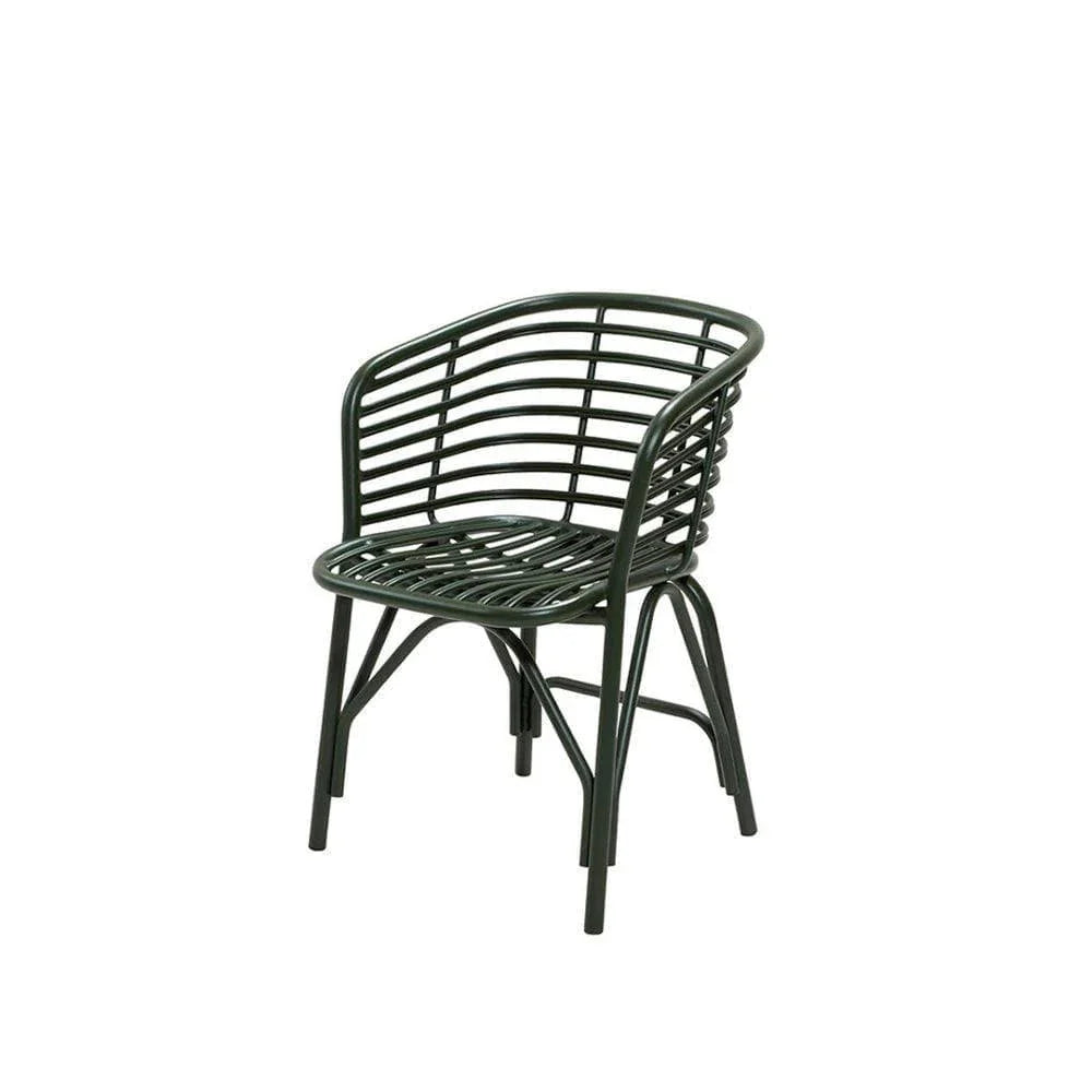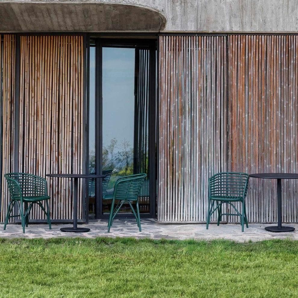 The Blend outdoor chair is available in dark green and lava gray.