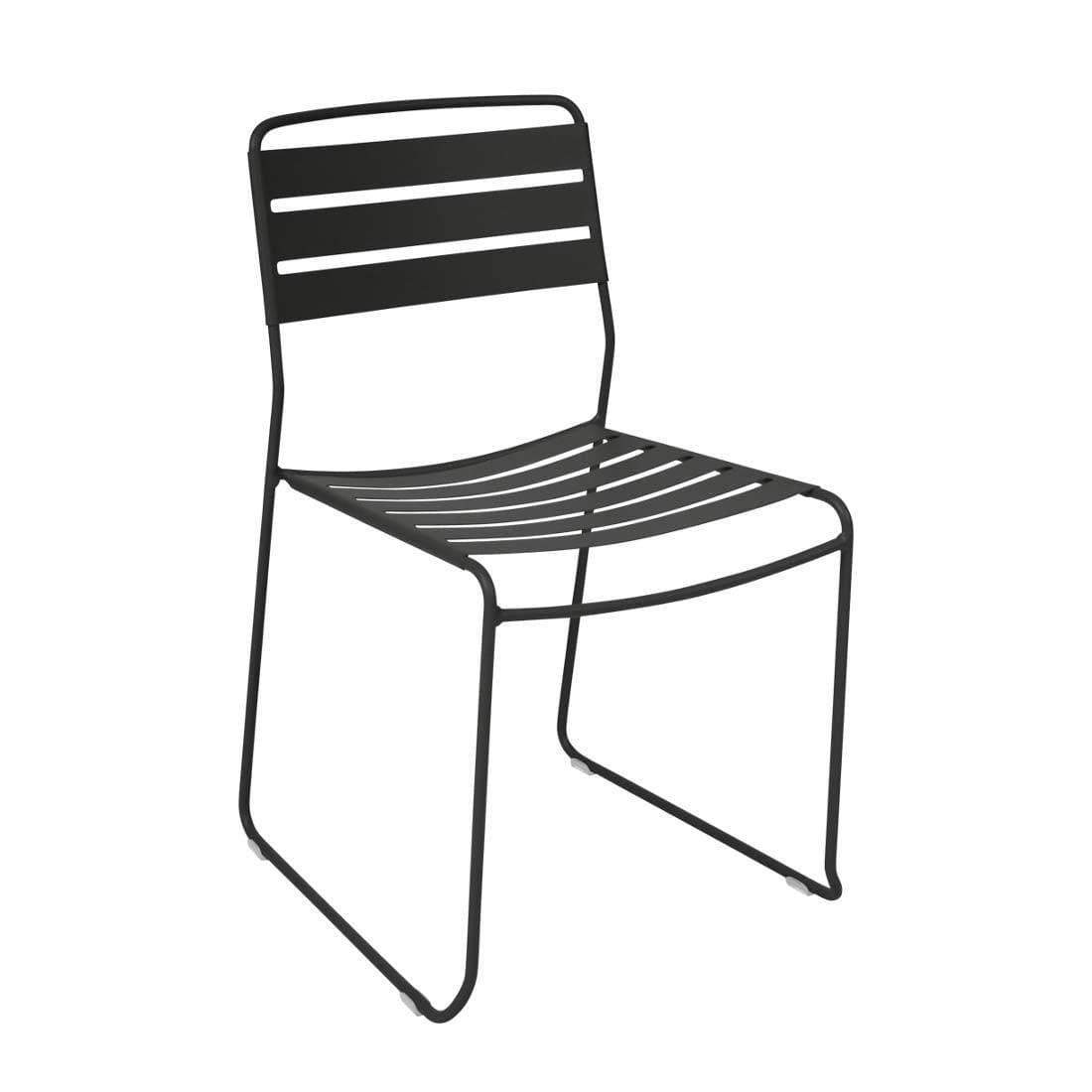 50 x 49 x H81cm Seat height: 48cm Width between legs: 49-43cm Structure: steel wire Seat: sheet steel slats, laser cut Backrest: sheet steel slats, laser cut Can be stacked up to 10 pieces (stacking height in this case: 95 cm) Product improvement: improved stack reliability - Private use - Professional use/Horeca - not for public use
