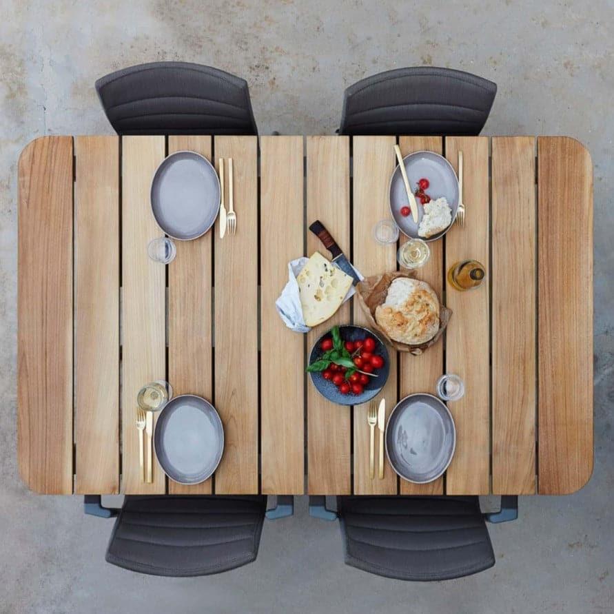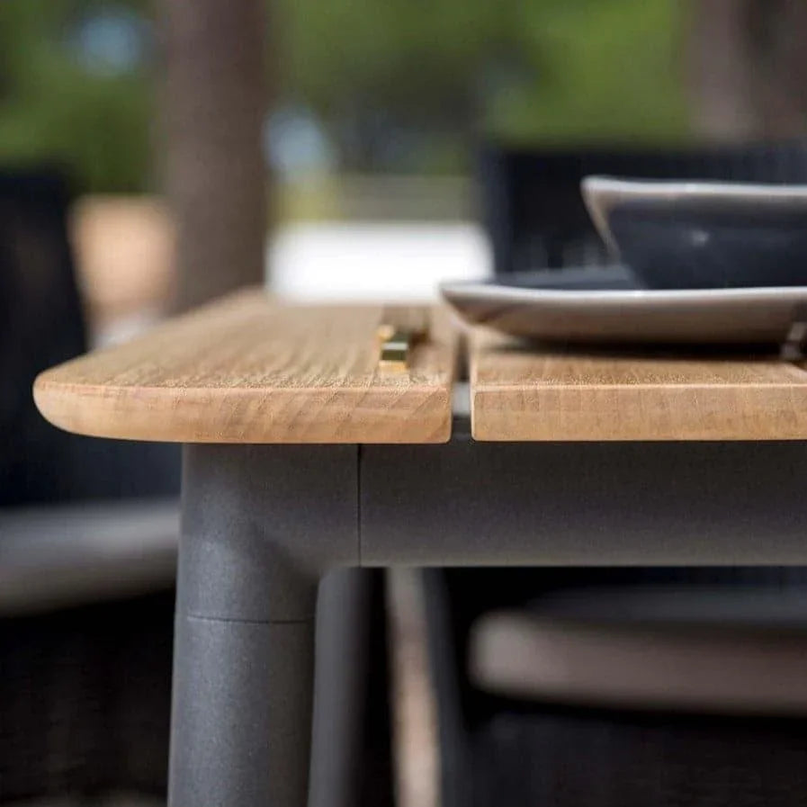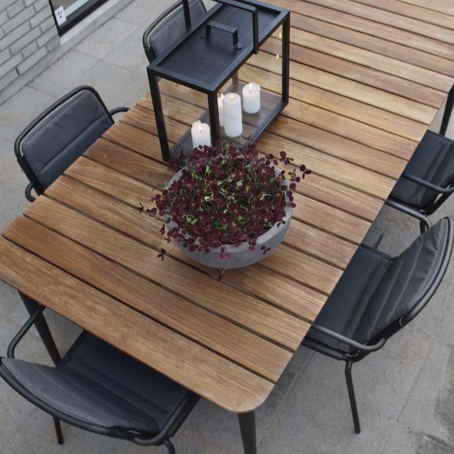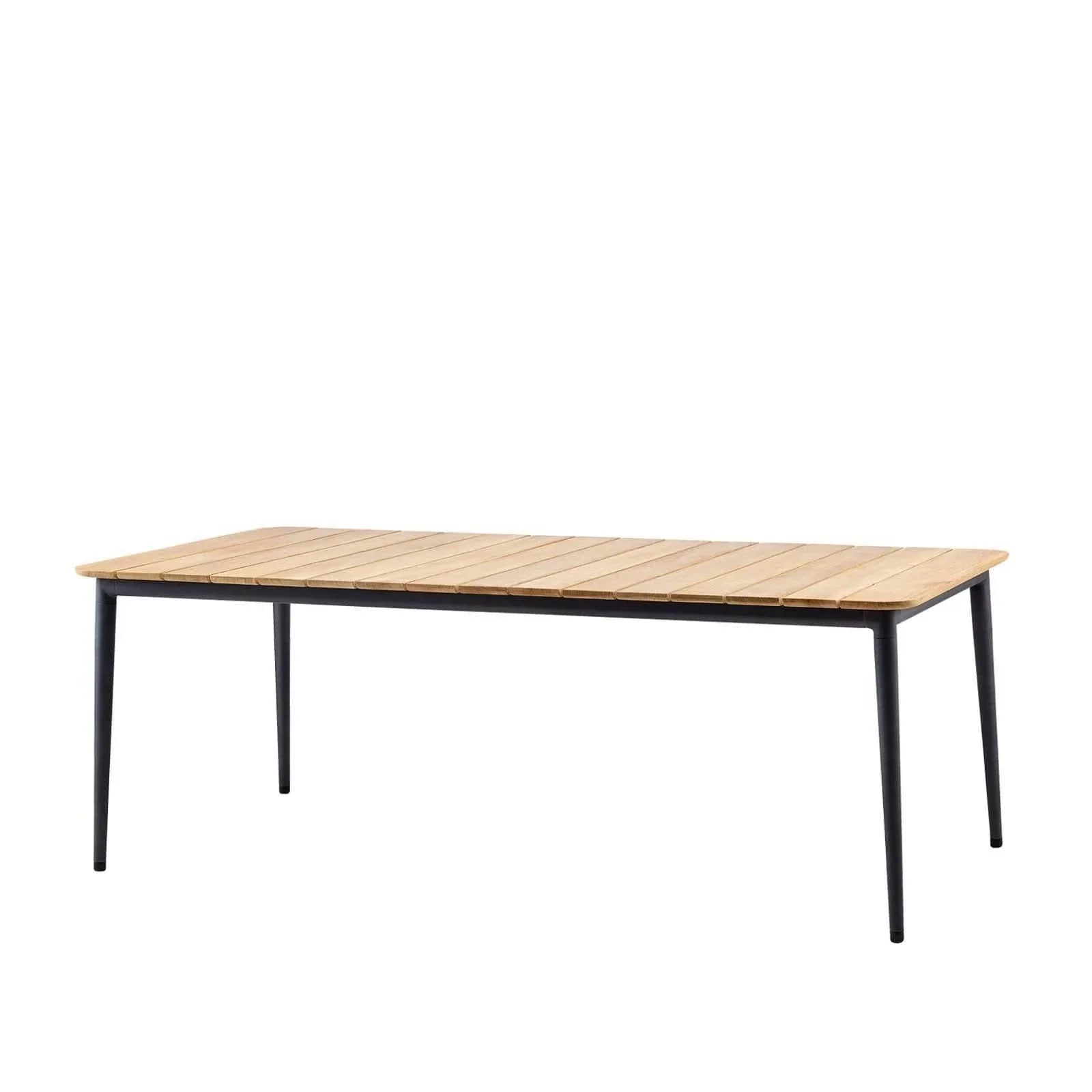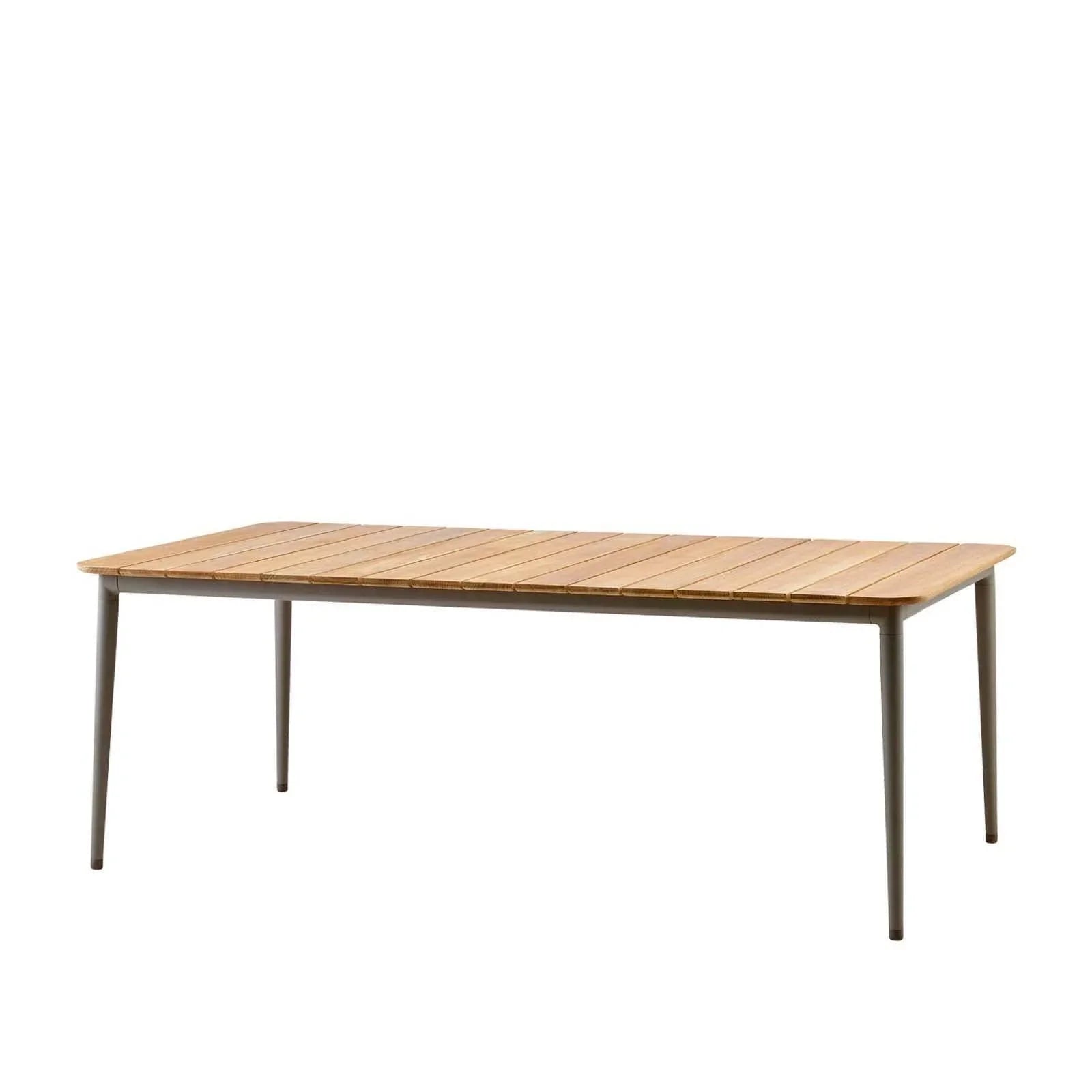 With the Core dining table from Cane Line, simple elegance meets the charm of natural teak . He doesn't force himself into the center of attention, but is always there when you philosophize with your loved ones, eat and turn night into day. Its delicate base frame not only fits any interior style: it can withstand all weather conditions and offers you maximum legroom thanks to its simple design. You can configure it here in the two colors lava gray and taupe.