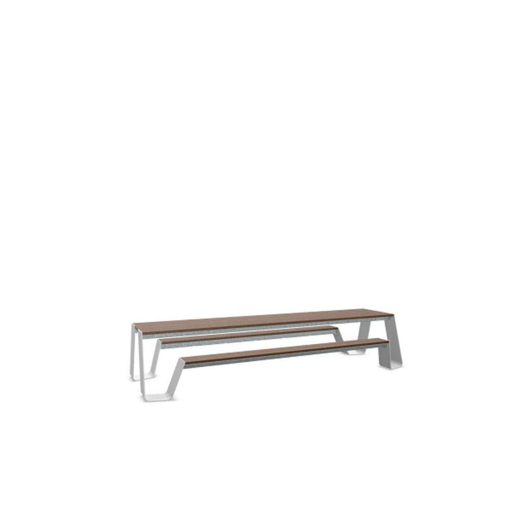 Hopper is a slightly more functional solution to a classic concept: the picnic table. The curved legs prevent awkward climbing over the benches. Aluminum or steel legs combined with Class I hardwoods ensure long life of the material, while the permanently attached benches offer pure aesthetics at all times. If you prefer a picnic table made of just one material, you can choose the HOPPER AA, our version made entirely of aluminum.