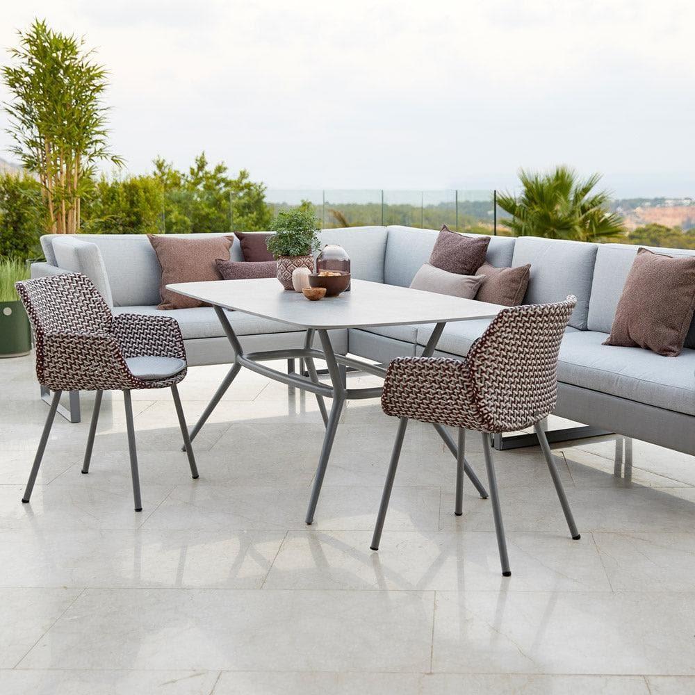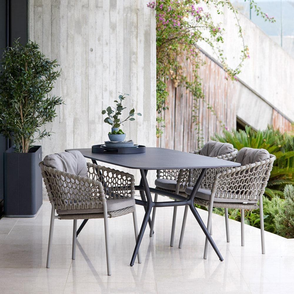 Joy is the combination of elegant, clean lines and an impeccable design language. The Joy series offers a collection of stylish dining tables for your outdoor space.The table frame from Joy gives the series its unique expression, which contributes to an aesthetic and minimalist look with its conical aluminum table legs and its curved shape. The tables in the series are available in both a round and a rectangular version as well as in a dark and a light color. The table tops are made of high pressure laminate (HPL) with a beautiful surface.