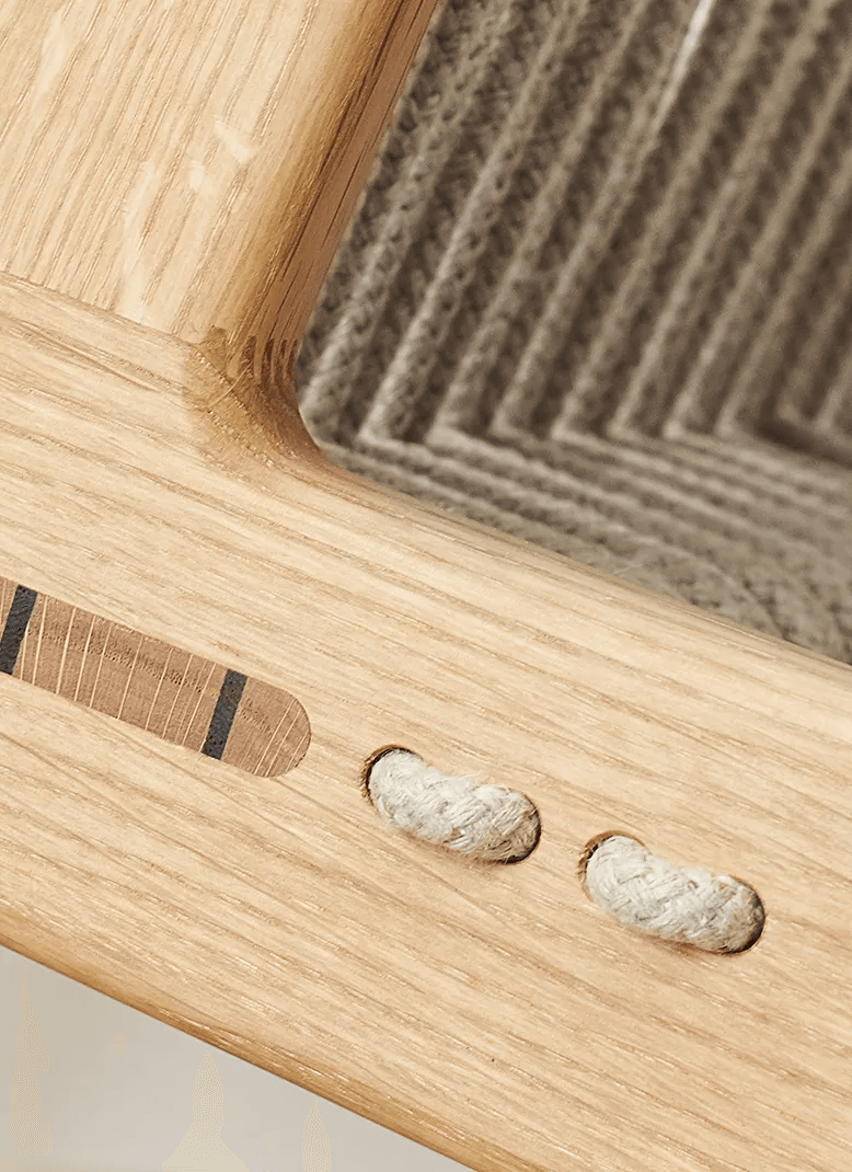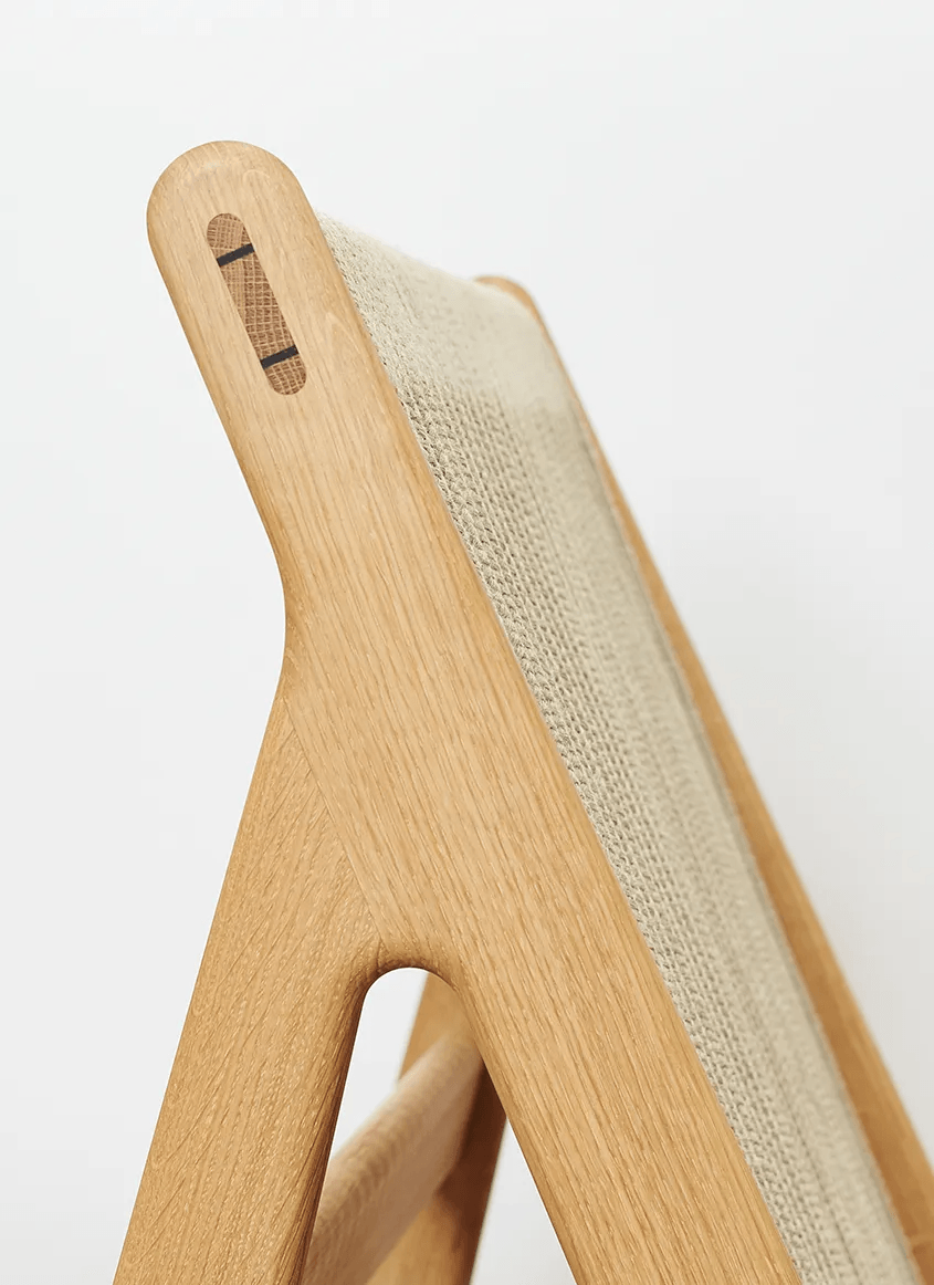 Beautifully simple, light in weight and expression - the debut piece from new Danish talent Mathias Steen Rasmussen is an impressive interplay of craftsmanship, comfort and sustainability . Originally conceived as a lounge chair that he could also use for meditation in his home, Rasmussen's combination of wood and rope creates a simple, flexible chair that conveys a feeling of floating and connection to the ground. The open triangular frame, available in walnut or oak , was designed without using a single screw, while the hand-woven , natural linen rope forms the seat and backrest and brings lightness to the design.