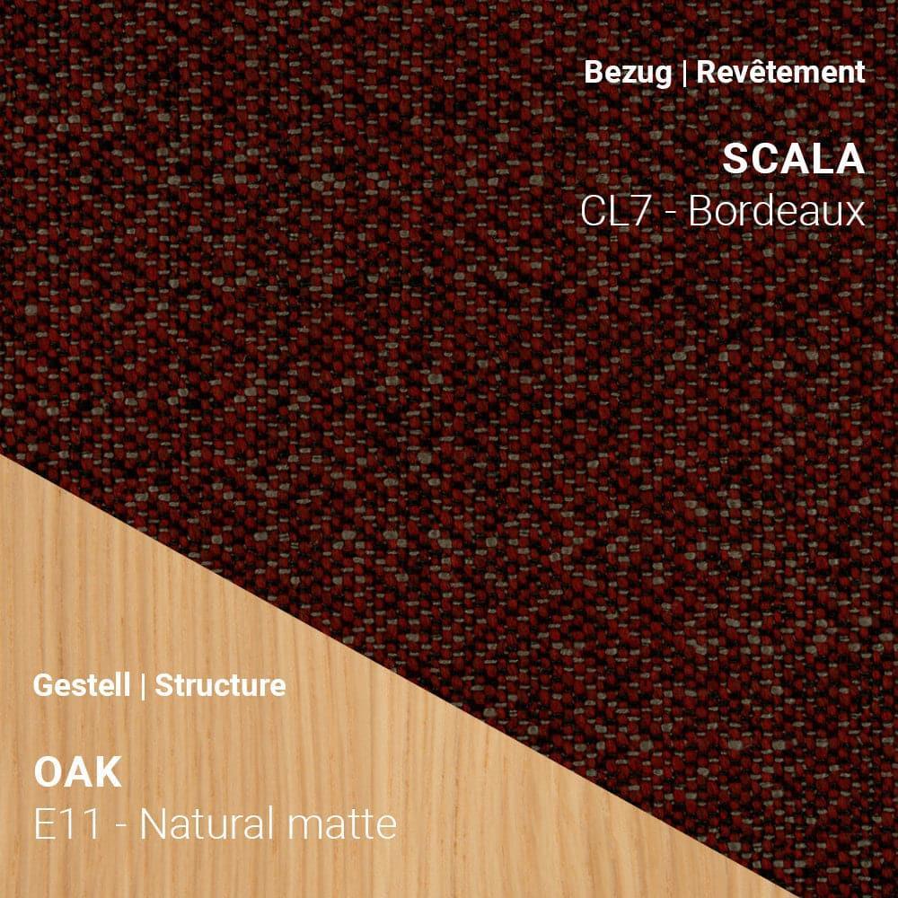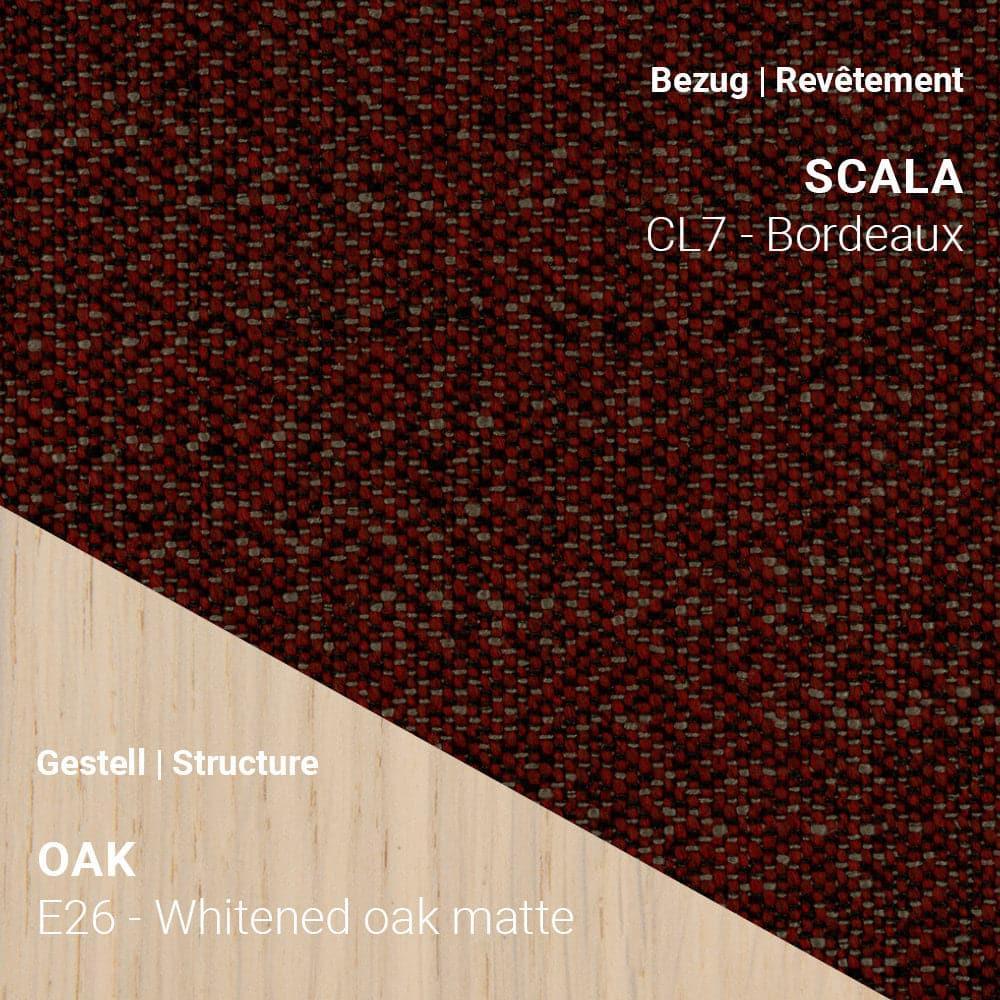 59 x 59 x H82 cm Seat height: 50 cm Frame: solid beech wood with glued connections Back: 10 mm thick, pressed multiplex board Seat: Fabric - Hip Hop | Orlando | Bogota | Genova | Mango | Sotega | Mystic | Otello | Sotega FLS | Tailor Yves | Scala Padding: Different foam layers (polyether and HR) Base : oak | walnut Gliders: plastic (for tiles, natural stone, hard floors), felt (for parquet) or metal (for carpet) Seat: All colors from the Mobitec color range are available* Frame: natural oak, black oak
