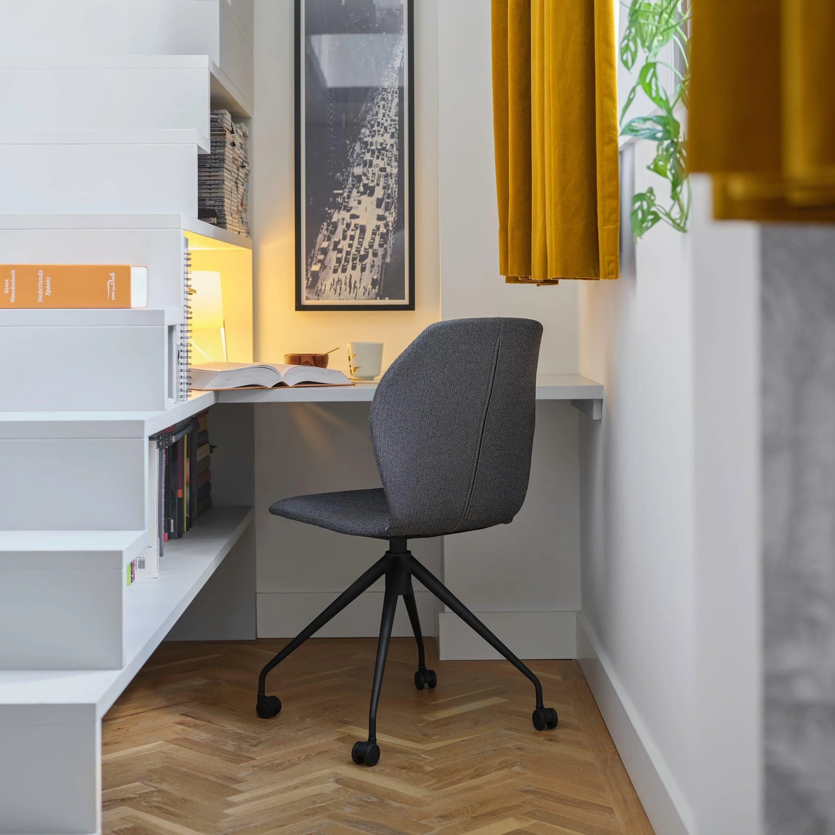 The swivel base of the MOOD 90 is made of high-quality metal and can be personalized in four timeless colors. This flexibility makes the office chair an ideal companion in any stylish working environment or modern living space. The personalization option allows you to perfectly match the chair to your existing furnishings, creating a harmonious interior design.