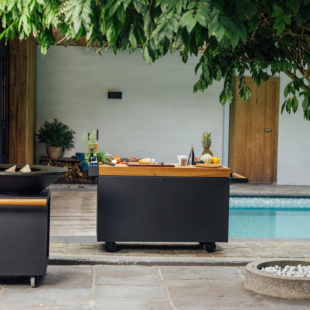 The table is available in black-coated or Corten steel and, in combination with the dark gray ceramic or teak, offers aesthetic versatility that blends harmoniously into any environment. This table is not only a functional piece of furniture, but also a design statement that is characterized by its elegance and durability. Whether modern architecture or classic ambience - the Ofyr Mise en Place Table PRO adapts effortlessly and always offers a stylish solution for your outdoor kitchen.