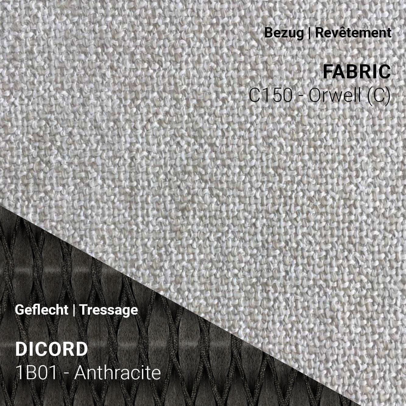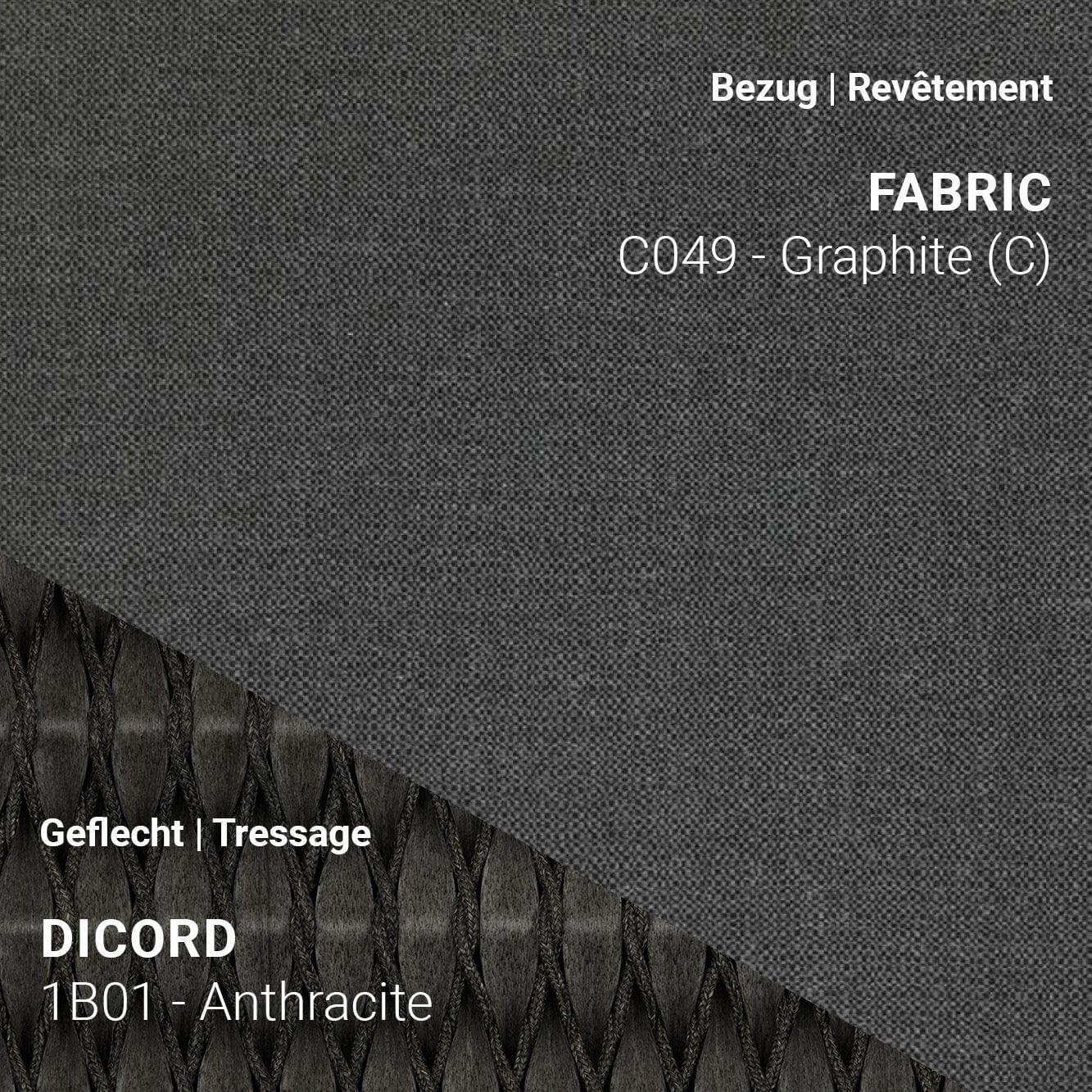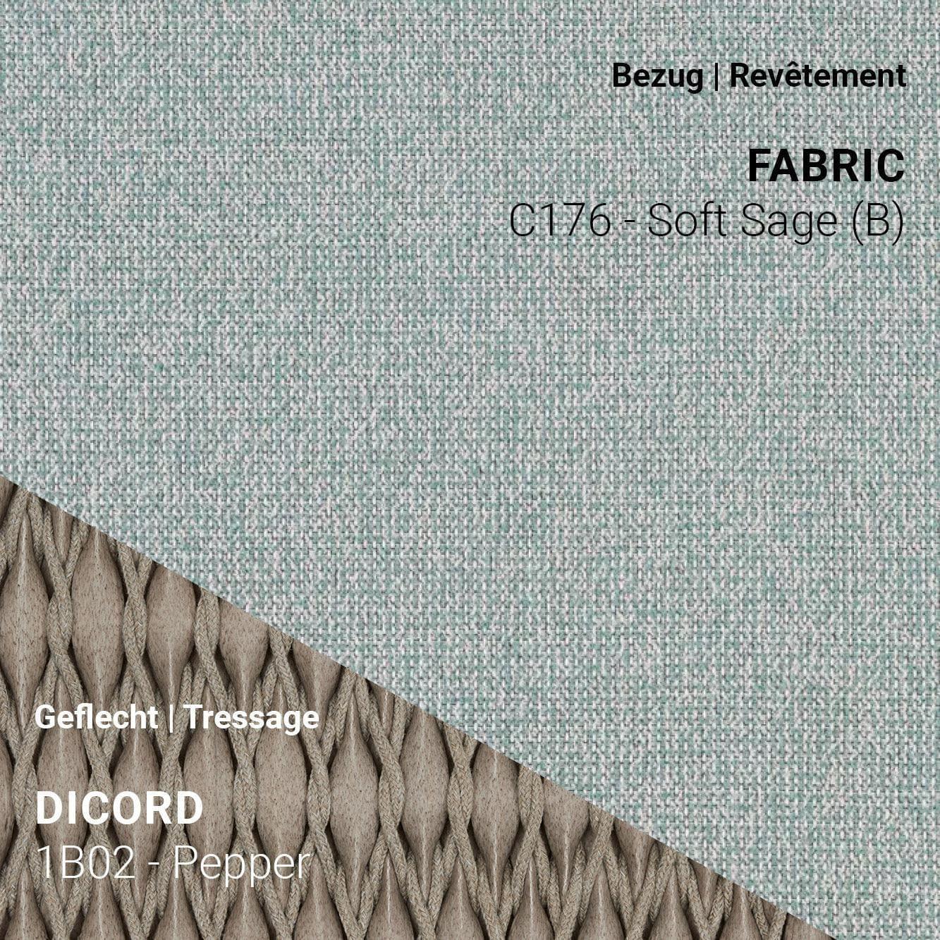 105 x 123 x H95 cm Seat height: 41 cm Armrest height: 33 cm Seat/backrest: Rope braid 4.5mm, recyclable, Green Guard certified Frame: teak Seat/backrest: Anthracite or Pepper Frame: Natural UV-resistant All furniture in the series is available in 3 color combinations. The Manutti furniture is ordered specifically according to your color preferences and can be combined with 53 different cushion colors. We would be happy to send you samples upon request. However, no exchange is possible for individual orders.