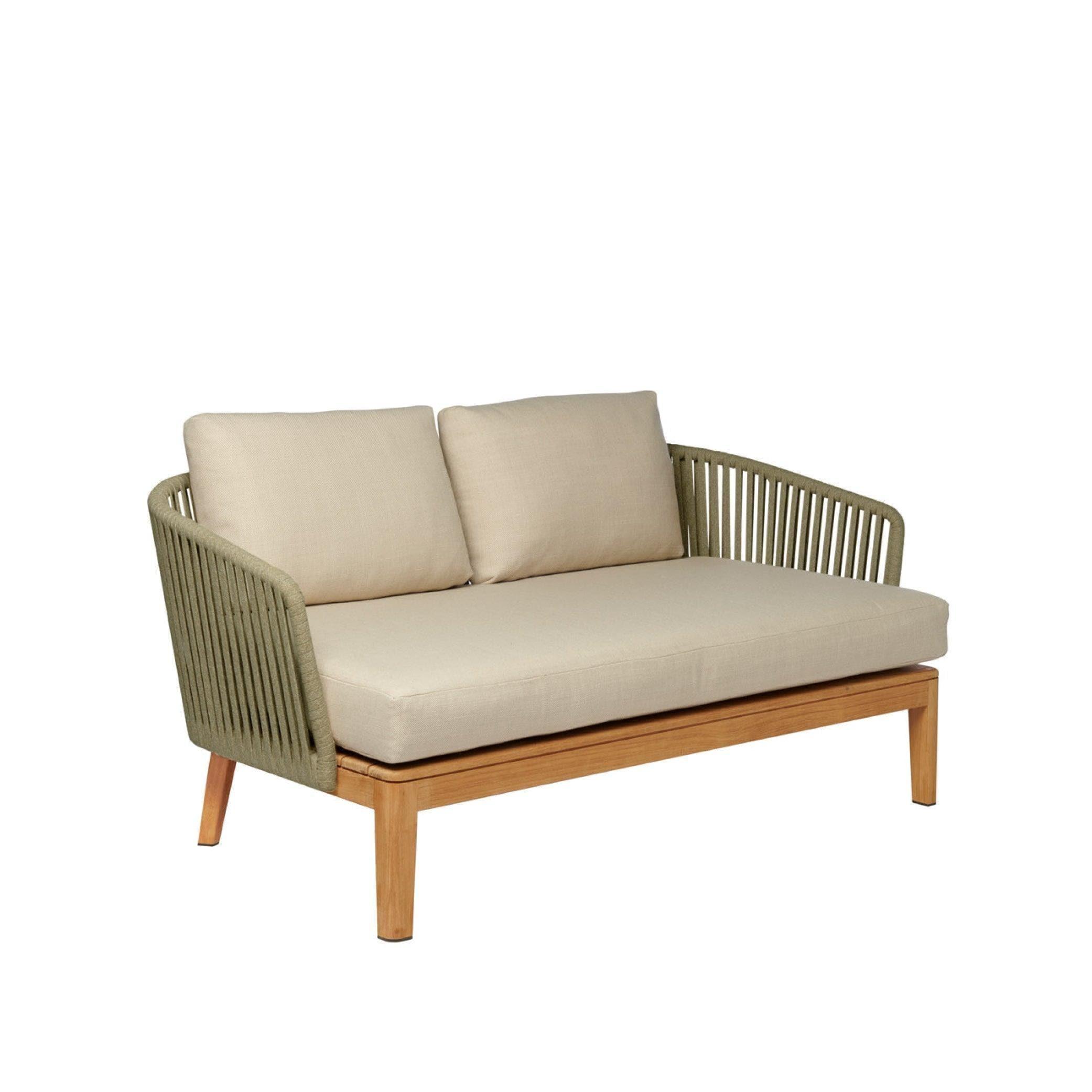 90 x 159 x H69cm Upper seat: 28cm Structure: Bois teck Dossier: Tressage Tricord (polyolefine) Structure: teak Dossier: Green mousse Coussin d'assise: Toutes les colors de Tribù Resistant to UV The Tribù furniture is specially designed for you, in different colors, and can be combined with different cousins in different colors. Sur demande, nous nous ferons a plaisir de vous faire parvenir un nuanced. Coussin d'assise: C06208BSET-C06208SW
