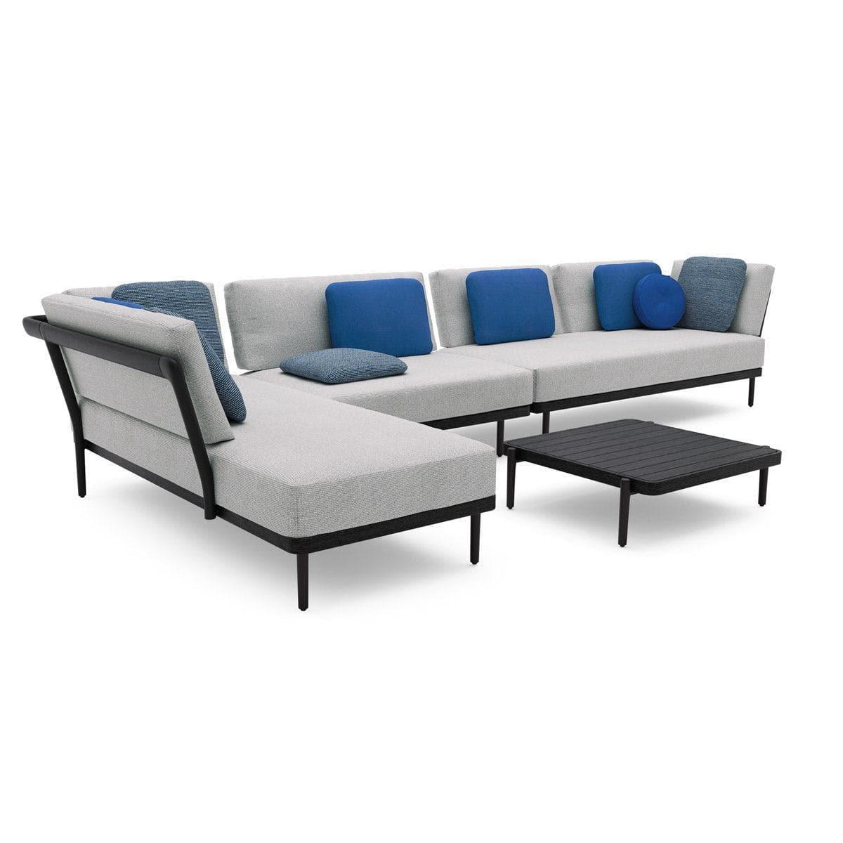 The flex lounge is delivered with spacious seating and back cushions and can optionally be equipped with various decorative pillows.