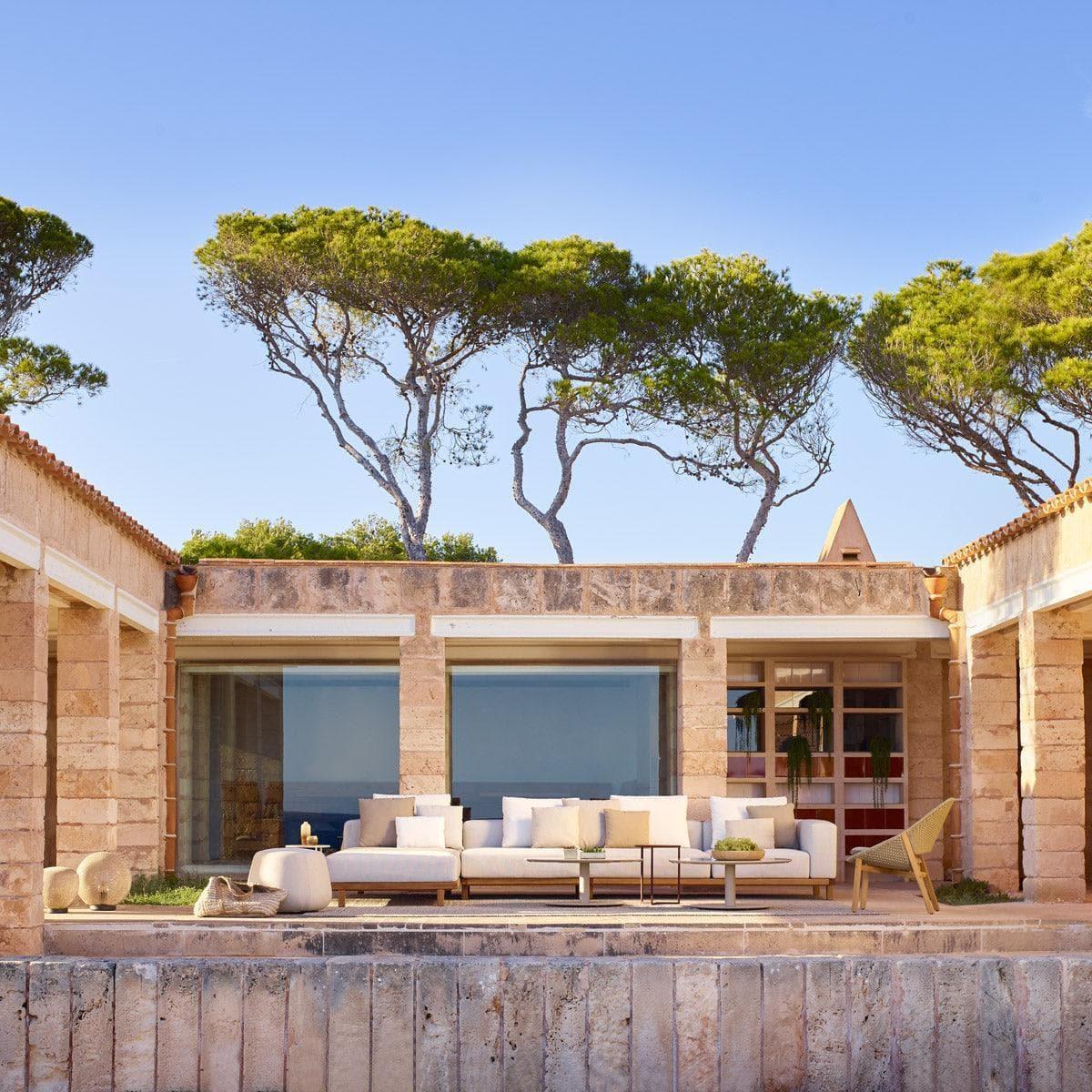 The structure of the furniture is made entirely of teak wood. The Vis à Vis Lounge cushions were developed so that they can easily be left outside in wind and weather. A water-repellent cover made of polypropylene with an air-permeable filling. The natural colors fit into any garden landscape - from the house by the sea to the purist roof terrace and create a natural, timeless flair.