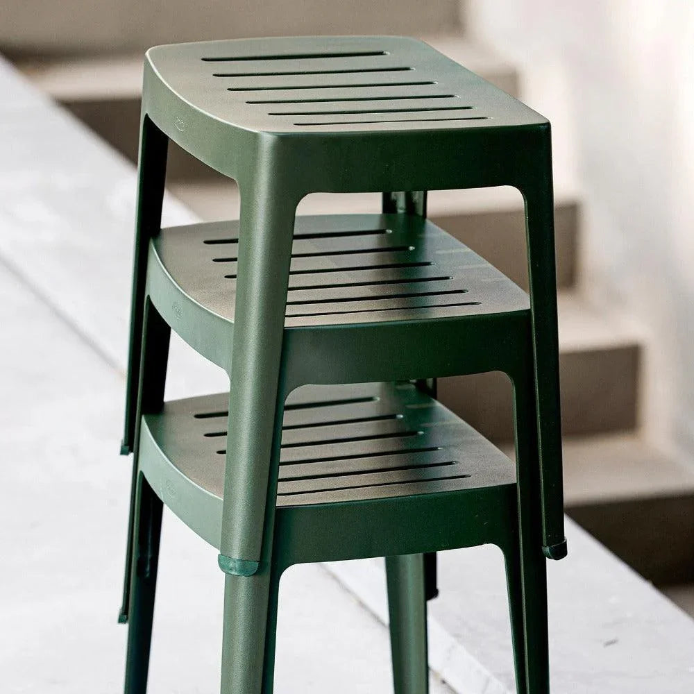 The Cane-Line Cut Stool is available from Original Homestories in the colors dark green, black and white.