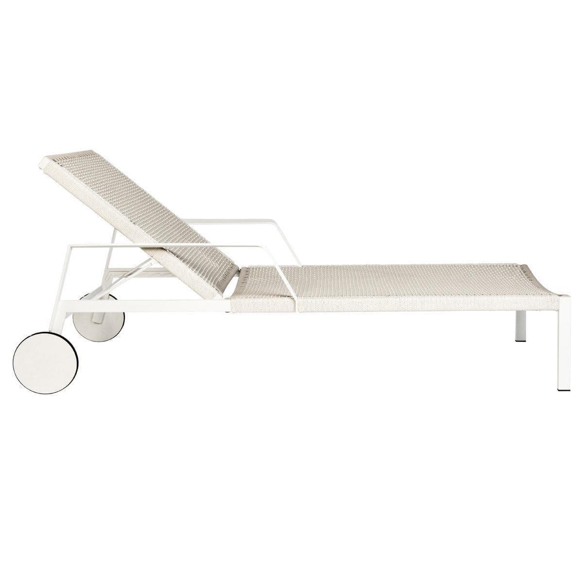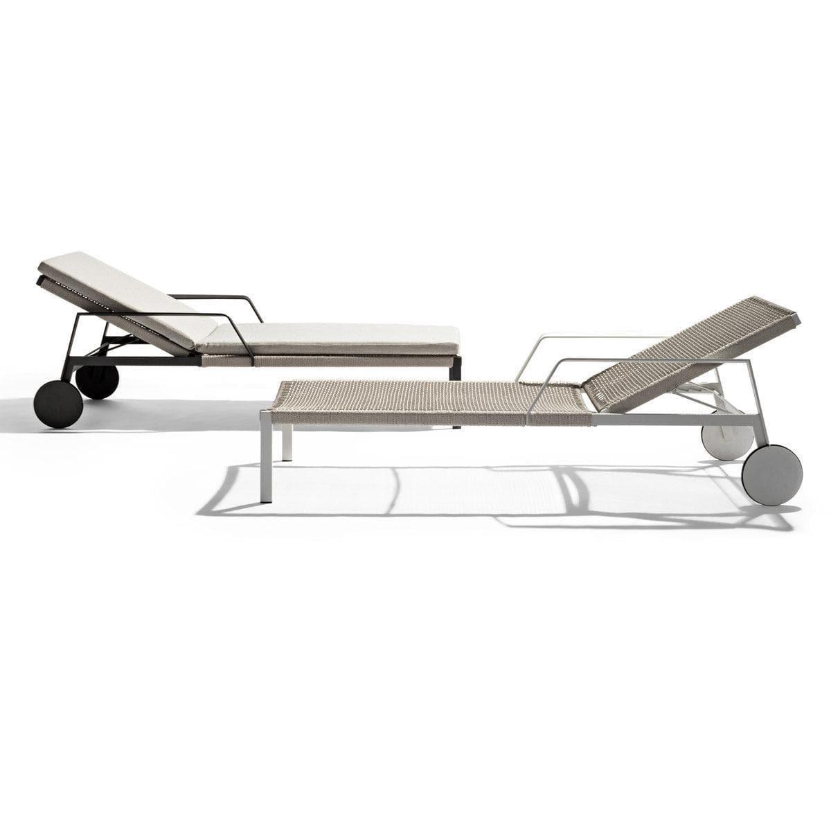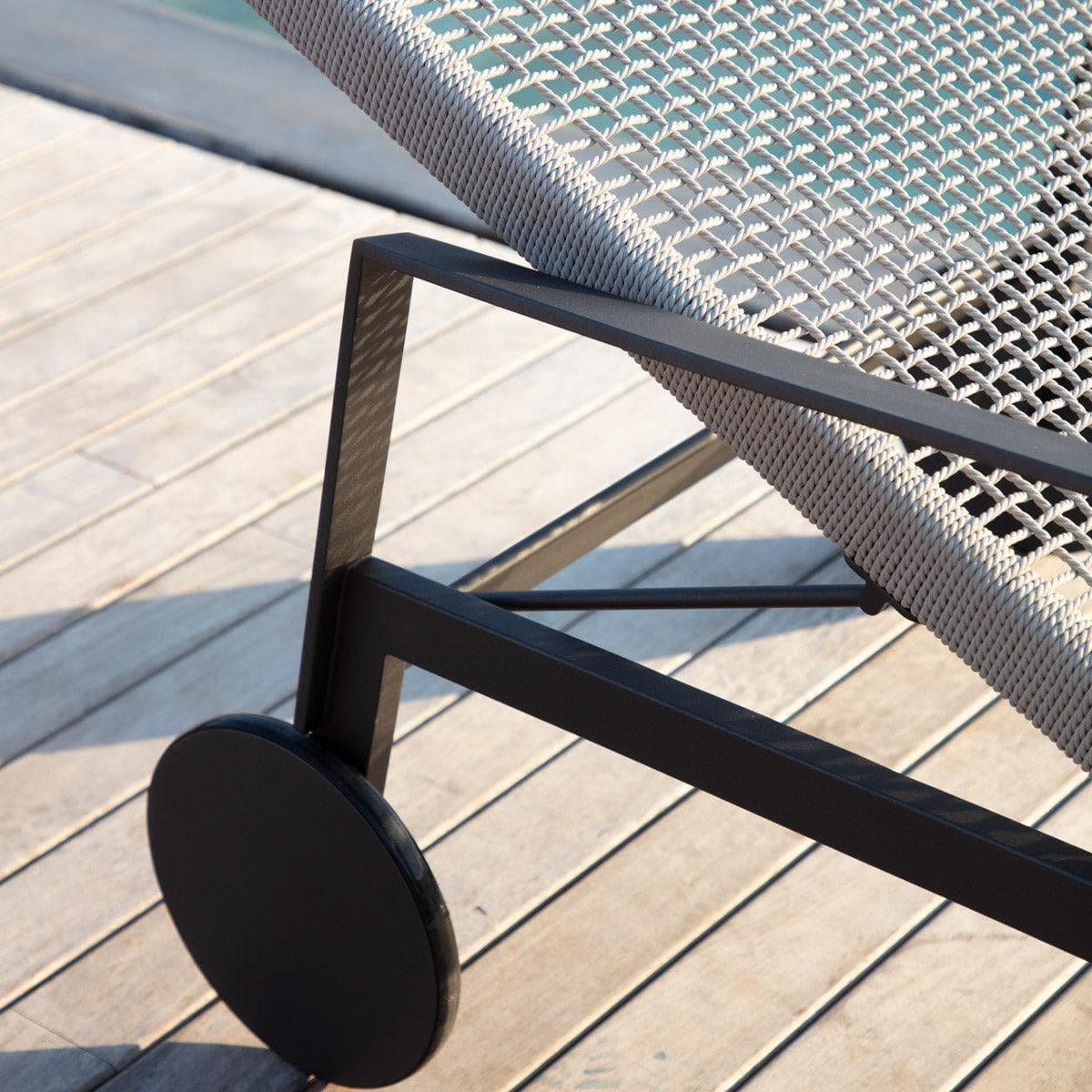The shape and silhouette of the Nodi sun lounger is light and airy - the design is made special by a swirling, intertwined rope stretched over a precise geometric wire mesh. Restrained, sophisticated proportions and a minimalist approach to materials give the Nodi collection - from the Canadian design agency Yabu Pushelberg - a casual lightness.