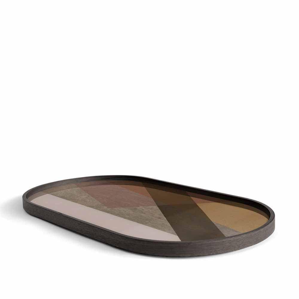 Experience more than just a functional home accessory with the ANGLE Pinot tray from Ethnicraft - discover a work of art that will enhance your living space. This exquisite creation from the Composed Angles collection is a prime example of well thought-out design and high-quality materials. The tray features a unique screen-printed glass design that creates an intriguing visual depth with its multi-layered composition of translucent and opaque layers.