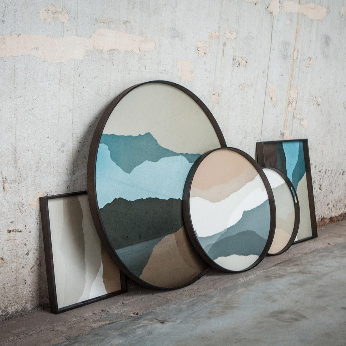 Inspired by the philosophy of Wabi Sabi, this design highlights the beauty of imperfection. Designer Dawn Sweitzer was inspired by the breathtaking landscape of the blue ridges. She describes how the colors of the sky, grays and mist lay across the horizon like a watercolor painting. With striking autumnal tones of sienna, sand and sepia, the tray captures the color palette of a sunset, bringing warmth and depth to any room.