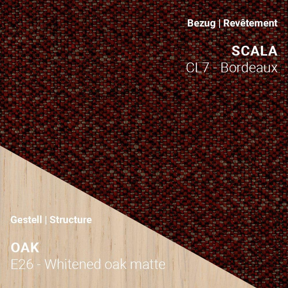 60 x 59 x H84 cm Hauteur d'assise : 51 cm Assise : Tissu - Hip Hop | Orlando | Bogota | Genova | Mango | Sotega | Mystic | Otello | Sotega FLS | Tailor Yves | Scala Dossier : -La structure est en hêtre massif avec des assemblages -Différentes couches de mousse (polyéther, HR et ouate). Patins : patins standard en plastique, patins en feutre ou en métal Structure : structure en bois en chêne massif ou en noyer. Assise : toutes les couleurs de la palette de couleurs Mobitec sont disponibles*. Structure : chêne ou noyerSKU (référence de l'article) SAGAC0212-UNI-PB+A-CLx-xx-xx-xx Taille Matériau