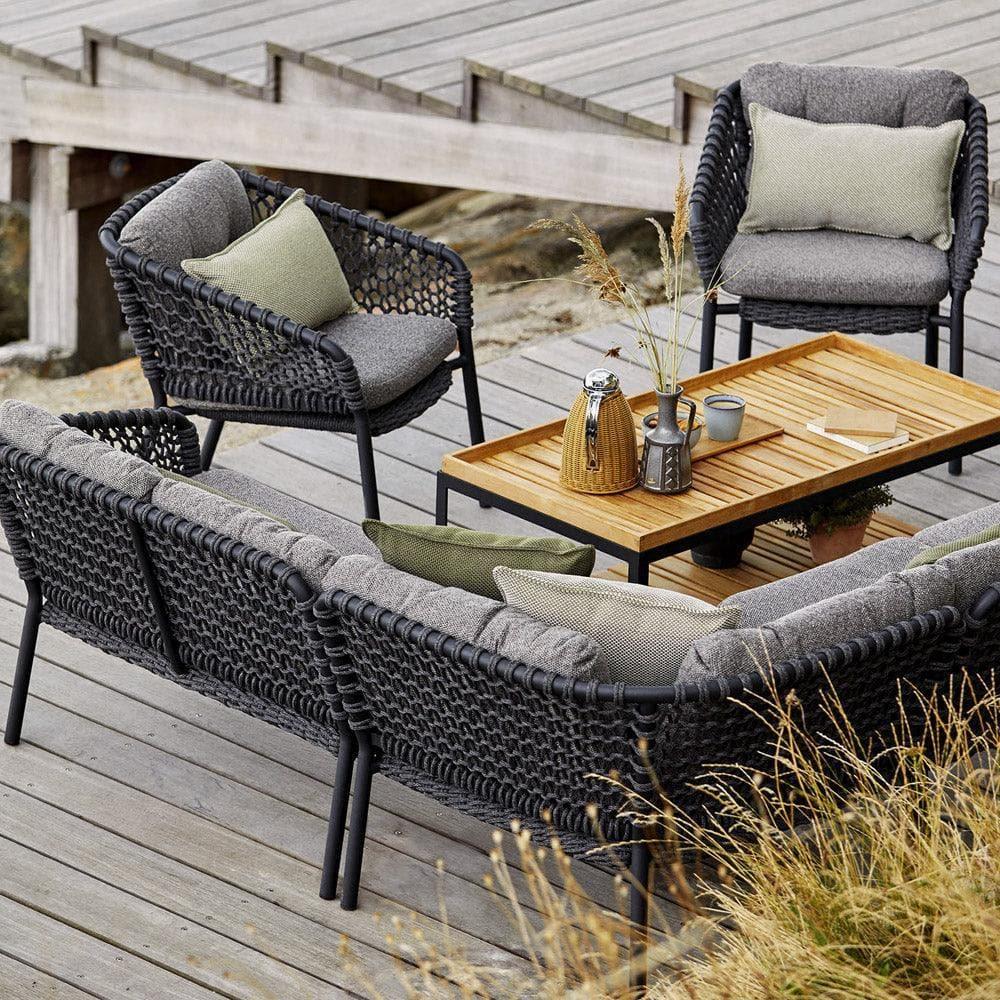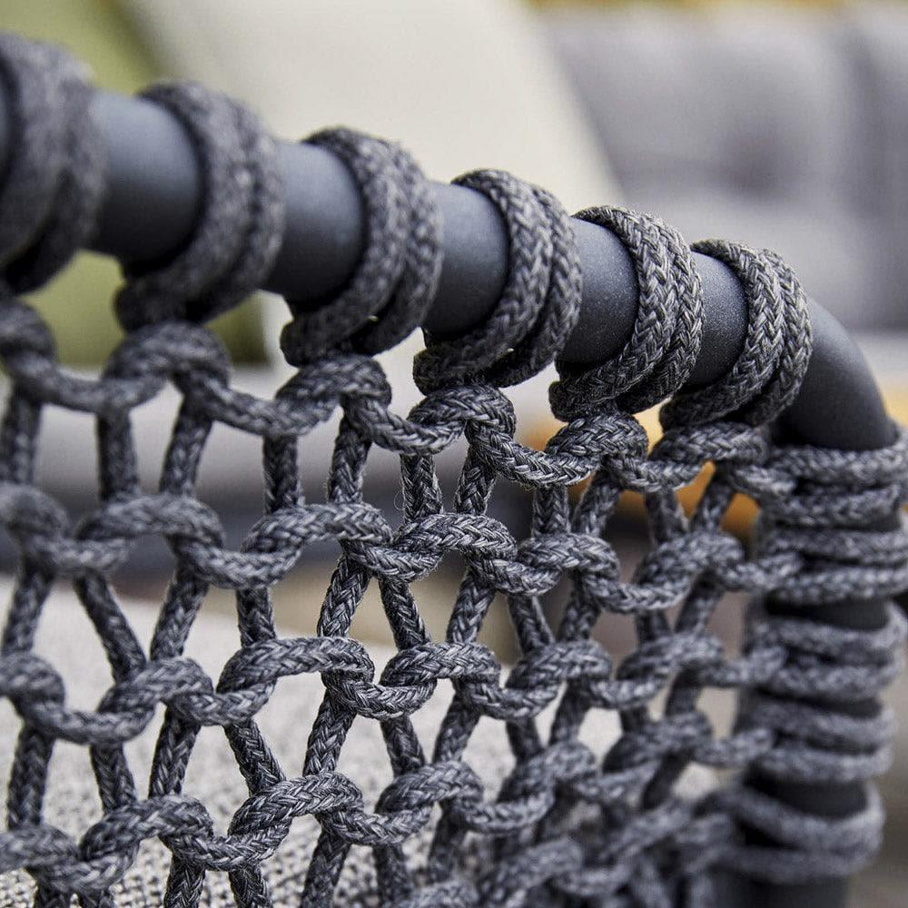 Le tissu Rope s'étend en un motif à grosses mailles autour du cadre en aluminium avec un revêtement en poudre appliqué de manière particulièrement régulière : de cette manière, Cane-Line crée un design filigrane à travers lequel vous pouvez voir et qui s'adapte ainsi parfaitement à la plupart des styles d'aménagement et de vie.