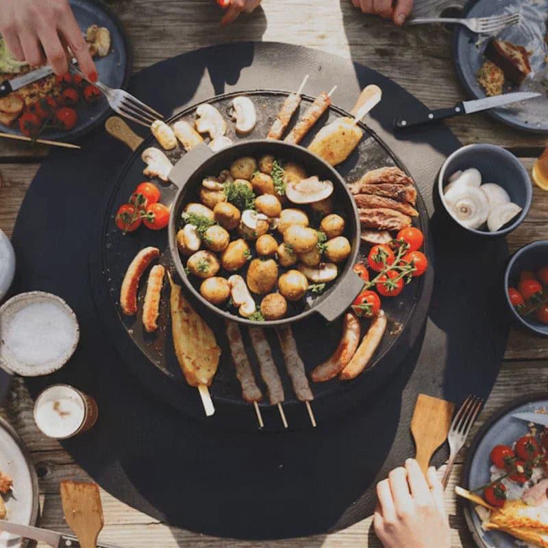 Protégez votre table des pulvérisateurs de graisse chaude avec cet élégant ensemble de vinyle noir pour votre tablier. Sa surface de vinyle structurée rend non seulement très facile à prendre soin - simplement éliminer avec un chiffon humide - mais vous permet également de déguiser avec élégance votre table. Placez-le directement en dessous de votre tablo et profitez du moment sans crainte.
