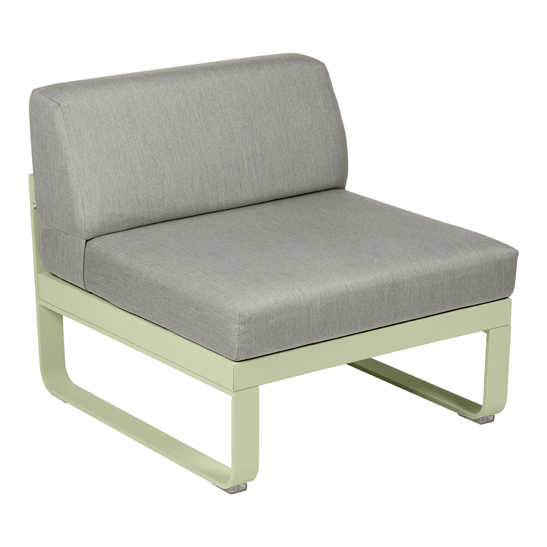 A la fois moderne et intemporelle, la collection Bellevie et ses rondeurs incarnent la joie de vivre au jardin. On doit ses lignes contemporaines au studio de design Pagnon et Pelhaître. Et Fermob souhaitait une nouvelle version pour proposer un ensemble de salon d'extérieur modulable et adaptable à souhait ! L'idée ? Vous permettre d'aménager votre espace extérieur à votre guise. Et de le concevoir exactement comme vous l'imaginez. Laissez libre cours à votre imagination ! Et choisissez vos pièces à combiner dans une série presque illimitée. Choisissez par exemple le module central 1 place. Vous pouvez l'utiliser pour composer un canapé d'angle ou pour prolonger un canapé en ligne. Et pourquoi pas aussi dans une composition en forme de U ? Et en combinaison avec un pouf rembourré, le module central 1 place se transforme en un "lit" confortable sans accoudoirs gênants. Qu'en pensez-vous ? Laissez libre cours à votre imagination pour créer un espace lounge spacieux. Vous serez surpris de la facilité avec laquelle ces modules peuvent être combinés : De petites baguettes permettent de les relier entre eux. Et ce système offre un maintien parfait ! Le module central 1 place est livré avec 4 tasseaux. Et comme aucun outil n'est nécessaire, les modules peuvent être déplacés très facilement ! Le module central 1 place offre tous les avantages de la famille de produits à laquelle il appartient : une housse de coussin en tissu d'extérieur 100 % acrylique, avec traitement de protection contre les taches et les moisissures, qui peut être lavée en machine si nécessaire. Avec un tissu Sunbrella® au toucher d'une douceur incomparable. Et enfin, une combinaison de mousses pour le dossier et l'assise, à la fois fermes et confortables, qui résistent aux intempéries et conservent leur douceur pendant de longues années ! Et la structure de votre module en aluminium, typique de la collection Bellevie, est elle aussi particulièrement durable et résiste au temps et aux intempéries ! Grâce à son revêtement en laque polyester. D'ailleurs, il adore les séjours au bord de la mer : grâce à l'aluminium à 100 %, il ne craint pas les embruns ! Sa structure métallique est disponible dans les 24 couleurs du nuancier et les housses de coussin en 3 teintes : à vous de choisir ! Profitez-en ! Et jouez avec les modules de la grande famille Bellevie pour apporter de la convivialité dans votre espace de vie au jardin, en jouant sur les angles et les ruptures de style ... Laissez libre cours à votre créativité !