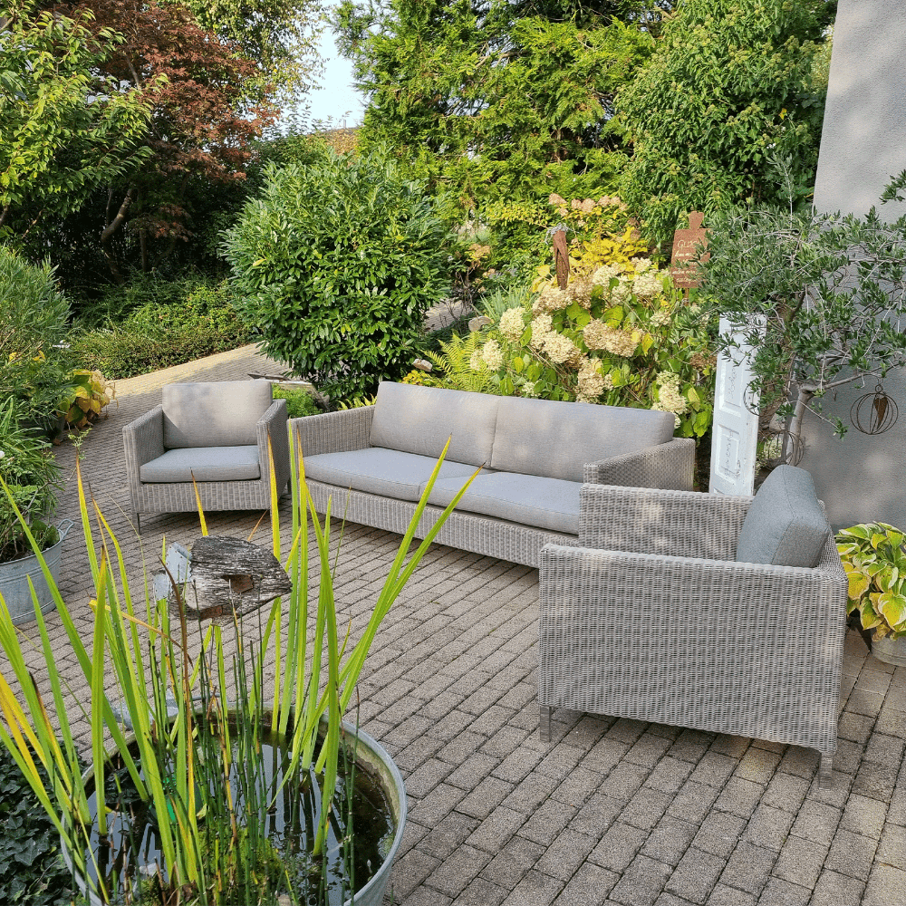 84 x 84 x 64cm hauteur d'assise : 30cm Profondeur d'assise : 66,5cm Cane-line Weave Tube extérieur en aluminium sur acier galvanisé Cane-line Weave : anthracite Housses: Coussin Cane-line Natté avec QuickDry & Airflow system - Blanc, gris, taupeTaille Poids 14,2 kg Matériau Couleurs/coussins Généralités Garantie 2 ans de garantie du fabricant