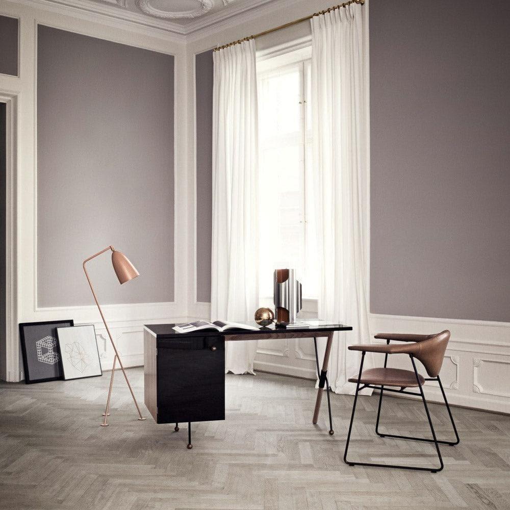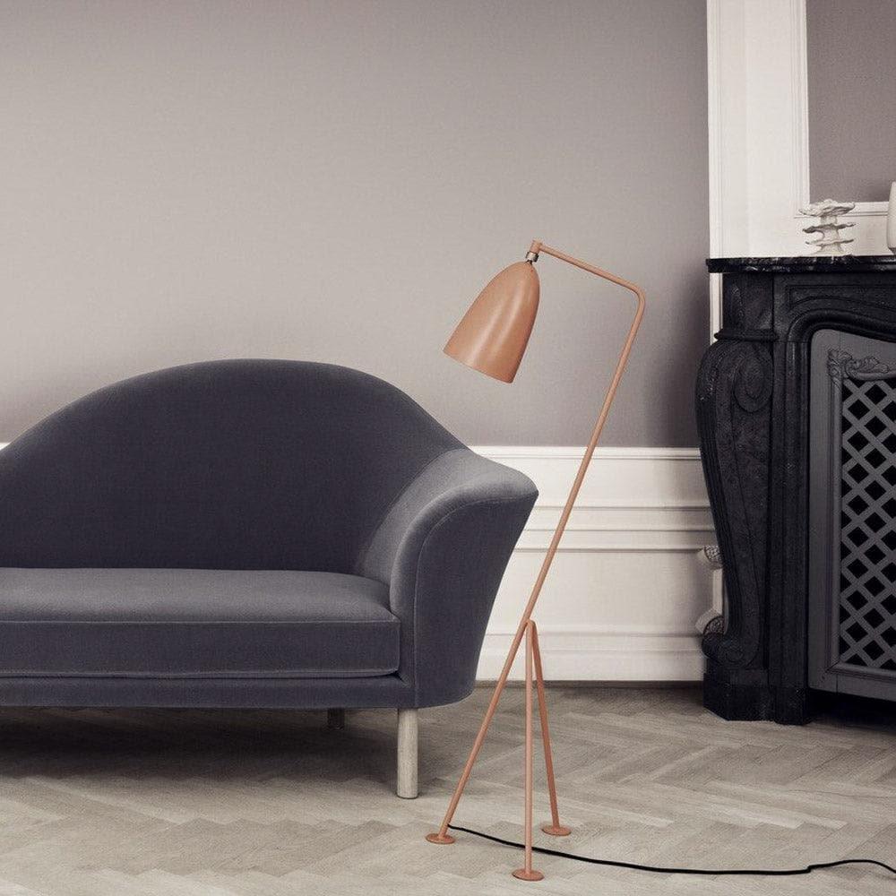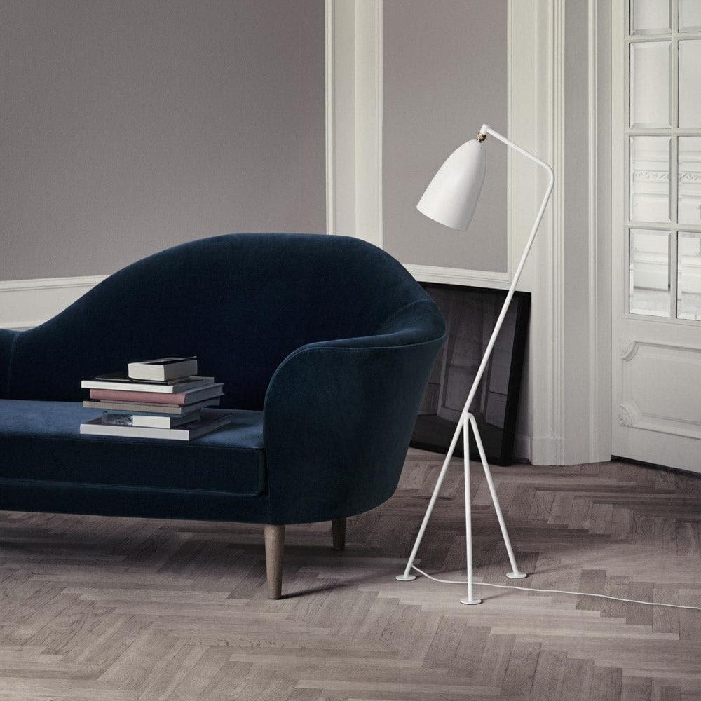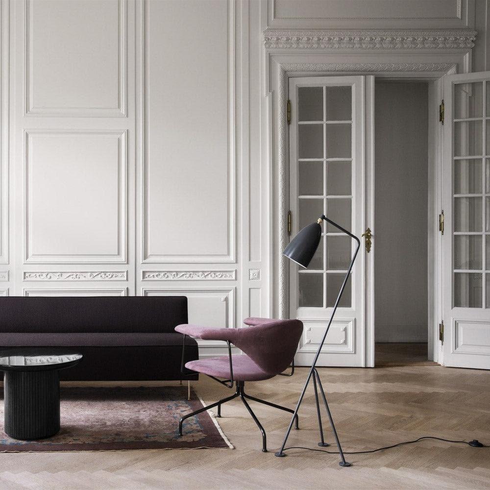 L'emblématique lampadaire Gräshoppa, créé par la designer visionnaire Greta M. Grossman en 1947, présente un design fascinant. Son pied caractéristique, légèrement incliné vers l'arrière, donne au lampadaire Gräshoppa une apparence vivante, comme s'il se faufilait à pas feutrés.