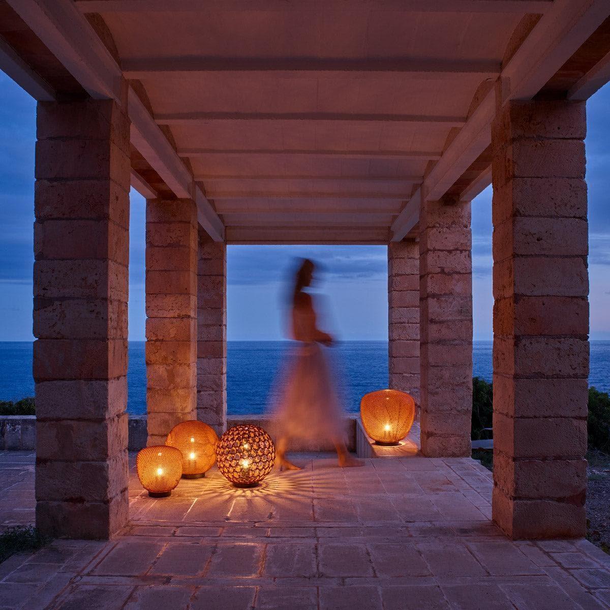 Transformez votre univers extérieur en un lieu magique et plein de féérie, grâce à la famille de lampadaires de la collection Tricot, créée par la designer Ilia Eckard. Madame Cachet, tout en rondeur et sympathie, allie le charme plein de douceur de techniques de tricot traditionnelles à la robustesse de matériaux résistants aux intempéries. Réalisées à la main, ces lampes rondes à poser composent une atmosphère pleine de chaleur et projettent sur les murs et le sol de magnifiques ombres qui invitent à rêver.