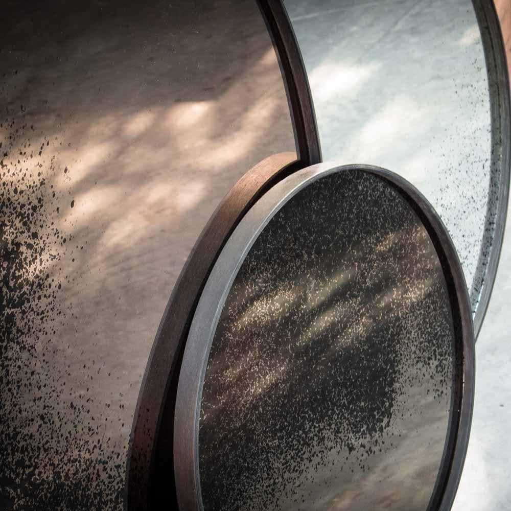 Le miroir AGED Round d'Ethnicraft est bien plus qu'un simple accessoire fonctionnel. Il incarne la fusion parfaite de l'art et de la fonctionnalité et enrichit chaque pièce de son charme unique. Le verre opacifié du miroir est le résultat d'un processus de vieillissement minutieux qui lui confère des couleurs chaudes et naturelles. Cette approche artistique fait de ce miroir une pièce véritablement spéciale, qui séduit aussi bien dans le salon que dans la salle de bains ou le dressing, comme art mural ou comme aide pratique.