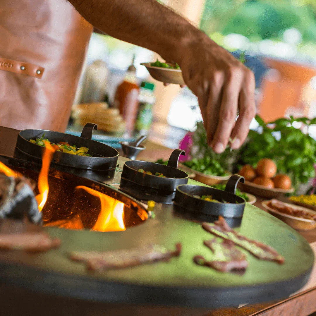 Pour une utilisation optimale, il est préférable de suivre les vidéos des produits avec les conseils d'utilisation de l'OFYR et de choisir soigneusement l'emplacement de votre cuisinière. Certains revêtements de terrasse sont sensibles aux gouttes ou aux éclaboussures d'huile inévitables lors des grillades. D'autres à l'érosion de l'acier Corten, dont la patine protectrice se développe encore plus sous l'influence des intempéries.