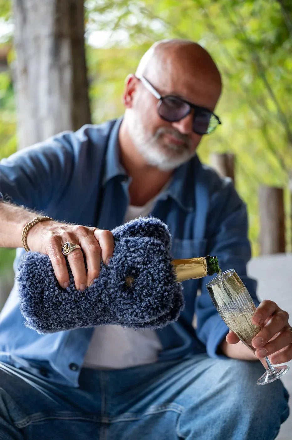 Le seau à vin Blue Curly de Kywie est la symbiose parfaite de la fonctionnalité et du style qui ravira tous les amateurs de vin. Fabriqué en peau de mouton 100 % naturelle, ce rafraîchisseur de vin n'offre pas seulement un aspect élégant, mais convainc également par ses remarquables propriétés isolantes. La couche de laine naturelle à l'intérieur du refroidisseur permet à votre champagne, bourgogne, vin mousseux ou même cidre pré-réfrigéré de rester à la température de dégustation idéale pendant des heures.