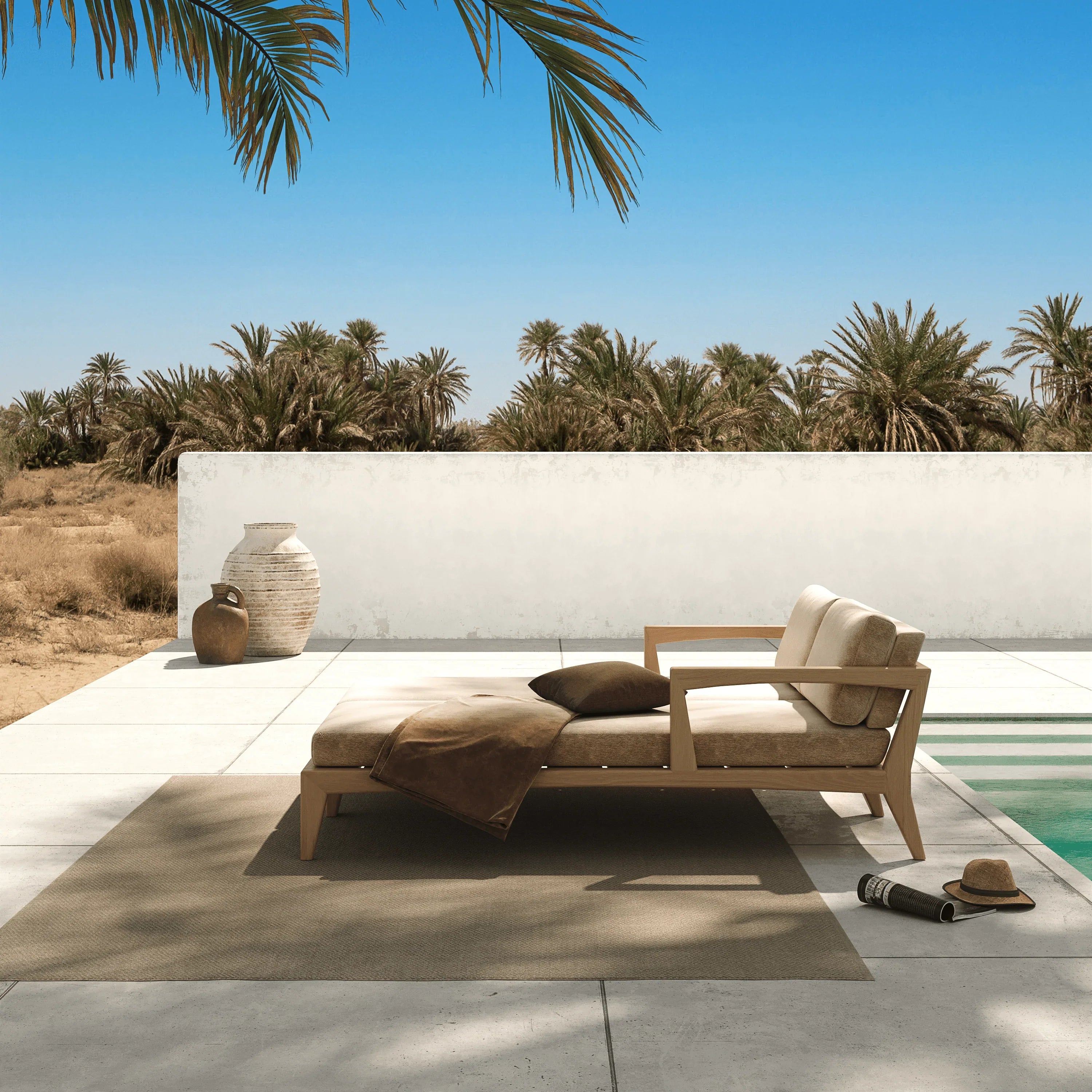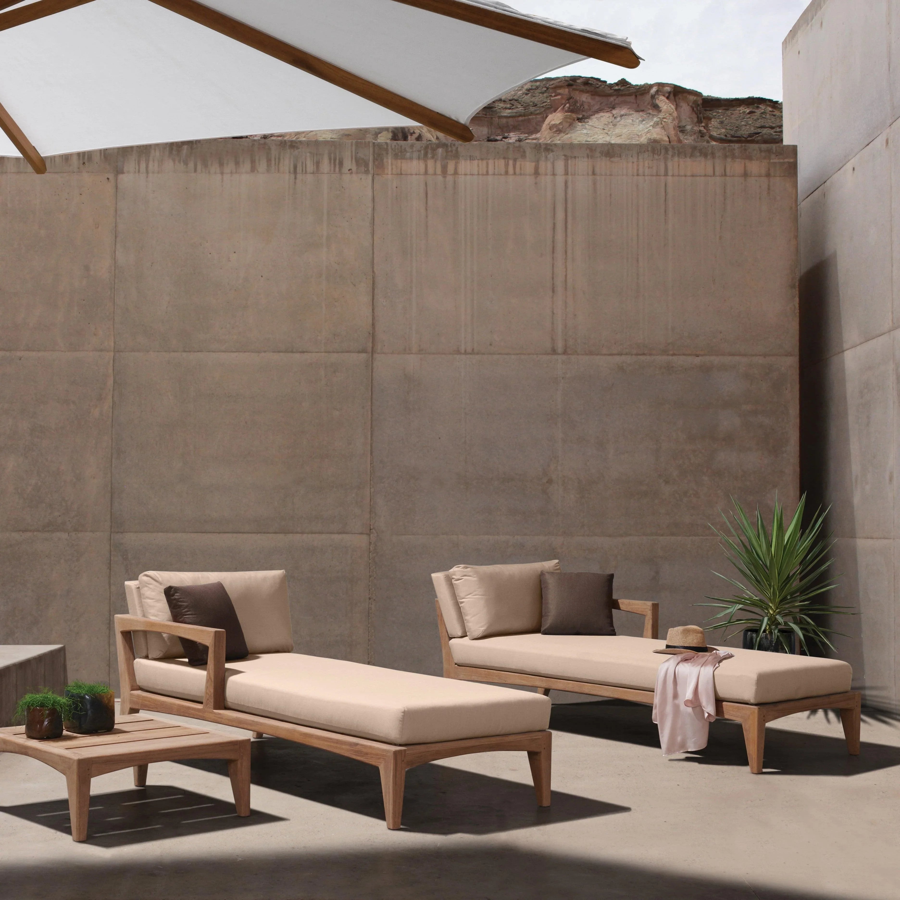 Le Lounge Set 03 se compose de deux daybeds qui offrent des possibilités d'aménagement flexibles. Qu'il s'agisse d'une surface de repos généreuse pour des heures de détente ou d'un point de rencontre élégant pour les invités, les daybeds s'adaptent à vos besoins et font de l'ensemble un point fort polyvalent dans votre espace extérieur. La finition de haute qualité et le design intemporel vous permettront de profiter longtemps de votre ensemble lounge.