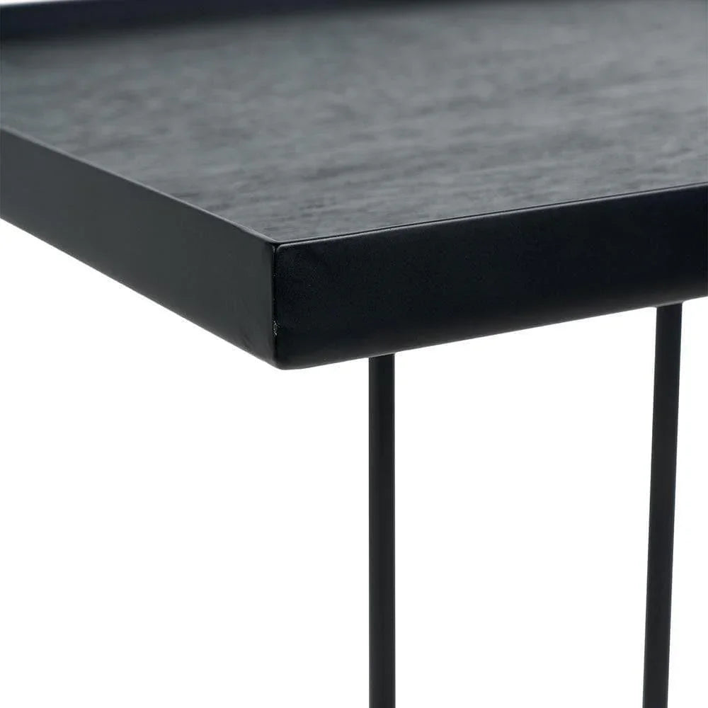 La table plateau SQUARE TRAY d'Ethnicraft est un exemple parfait de design moderne et de fonctionnalité polyvalente. Cette table d'appoint raffinée allie un style minimaliste à un charme industriel et constitue un complément parfait pour les espaces de vie sophistiqués. Le piètement élancé en acier noir confère à la table un caractère robuste, tandis que le plateau en placage de bois foncé apporte une touche chaleureuse et élégante.