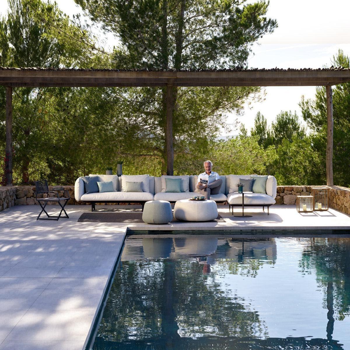Inspirées par la vie nomade, les Poufs nomades polyvalents parcourent votre jardin ou votre terrasse et remplissent différentes fonctions: ils peuvent être utilisés comme tabouret de pied, table d'appoint ou sièges supplémentaires.