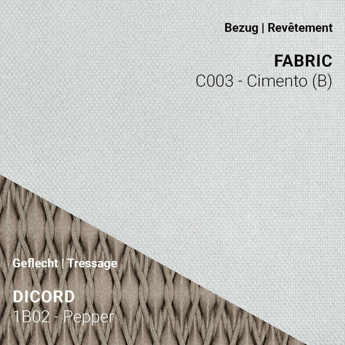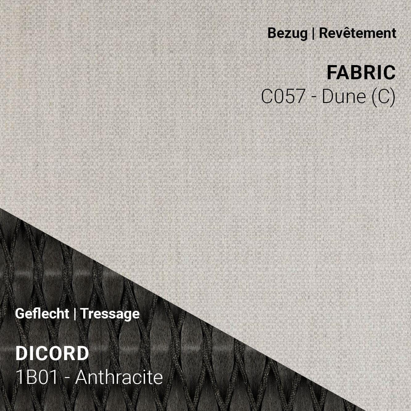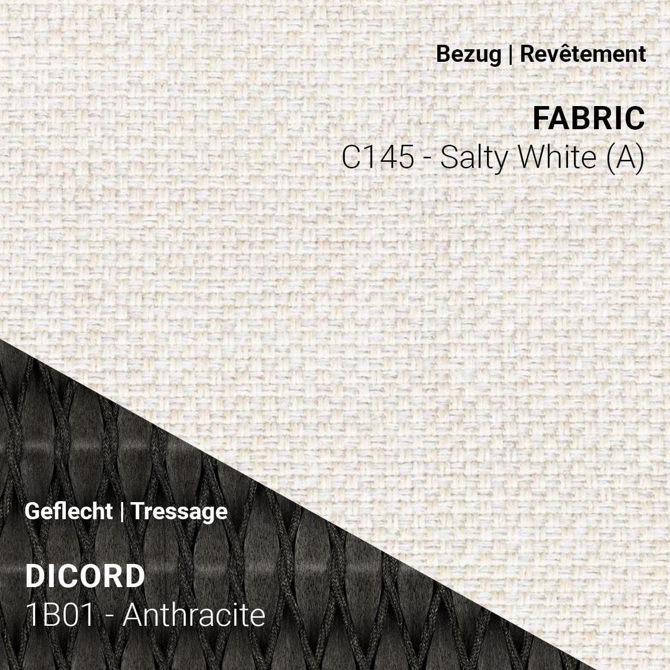 Assise : tressage Rope 4,5mm, recyclable, certifié Green Guard Structure : teck Assise : Anthracite ou Pepper Structure : Natural Résistant aux UV Tous les meubles de la série sont disponibles en 3 combinaisons de couleurs. Les meubles Manutti sont commandés spécialement selon vos idées de couleurs et peuvent être combinés avec 53 couleurs de coussins différentes. Nous vous envoyons volontiers des échantillons sur demande. Toutefois, aucun échange n'est possible en cas de commande individuelle.SKU(Référence de l'article) FUR0005240 HFTK 1B01 + CST0005298-xxx Taille 53 x 69 x H37 cm Poids 5 kg Matériau Couleurs Housses de coussin tous les tissus de la collection actuelle Généralités Garantie 2 ans de garantie du fabricant